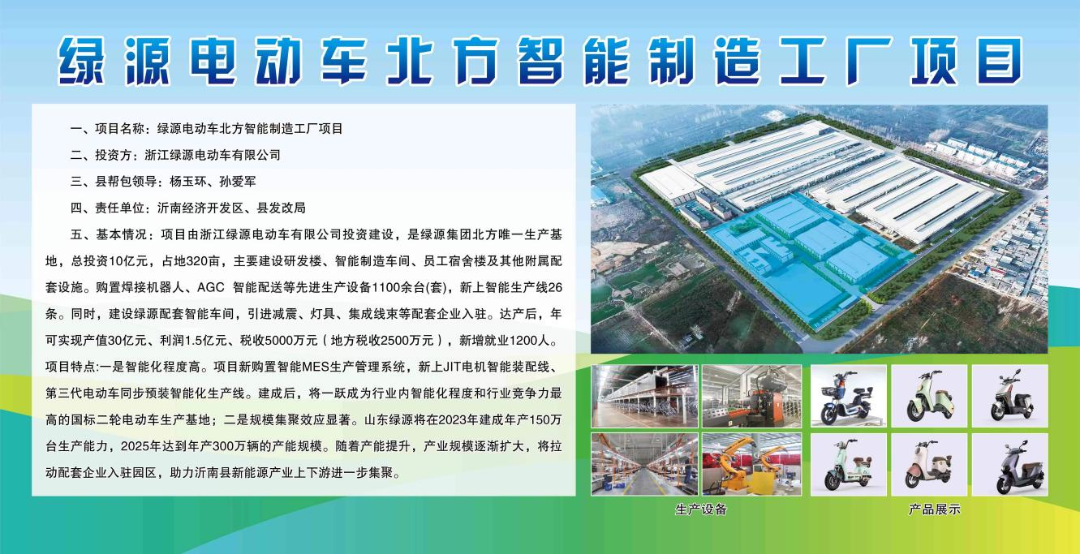 一是打造总部经济。绿源电动车是“浙江名牌产品”、“国家免检产品”,“绿源”商标也被认定为"中国驰名商标",是国内最具影响力的电动车品牌之一。项目实施后,沂南将成为绿源集团在北方最大的生产基地、山东地区功能型总部,大大提高沂南工业经济总体实力,助力“工业突破 县域崛起”。