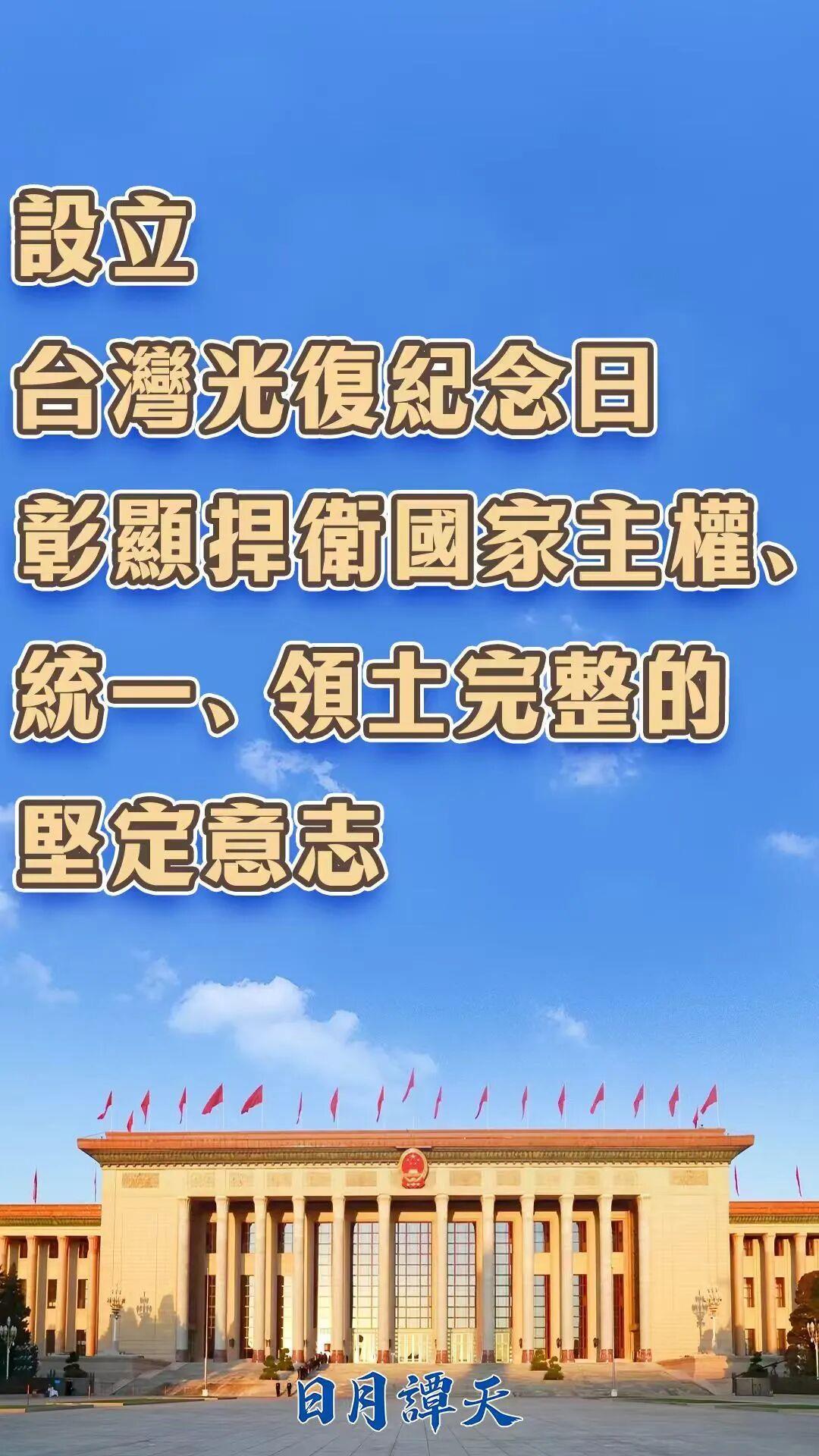 日月谭天|设立台湾光复纪念日彰显捍卫国家主权、统一、领土完整的坚定意志
