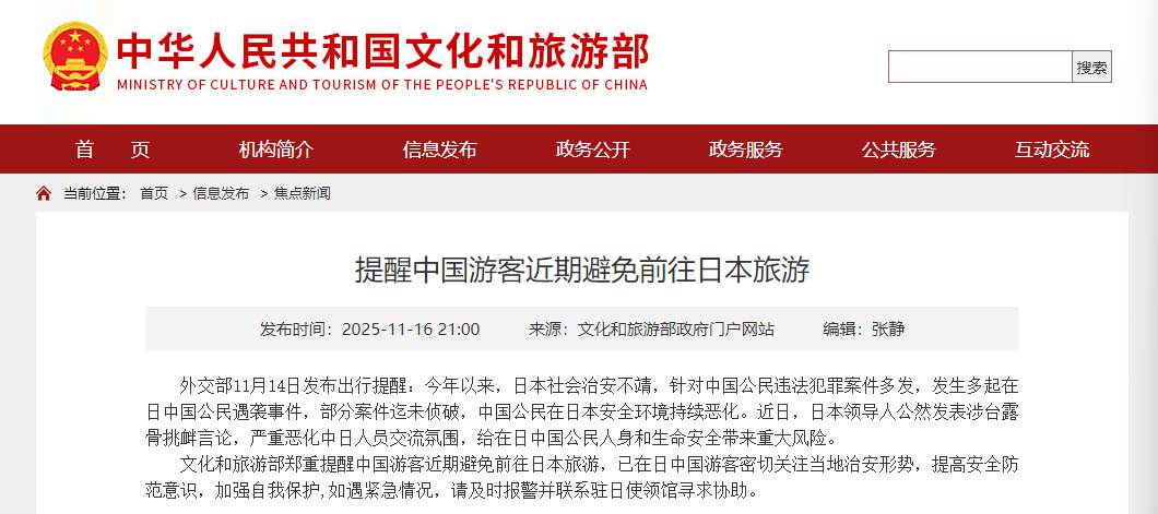 文化和旅游部郑重提醒:中国游客近期避免前往日本