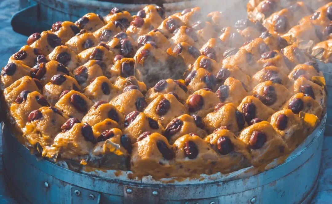济南仲宫大集上的年糕冒着热气。(资料图)济南市文化和旅游局供图 周博文 摄