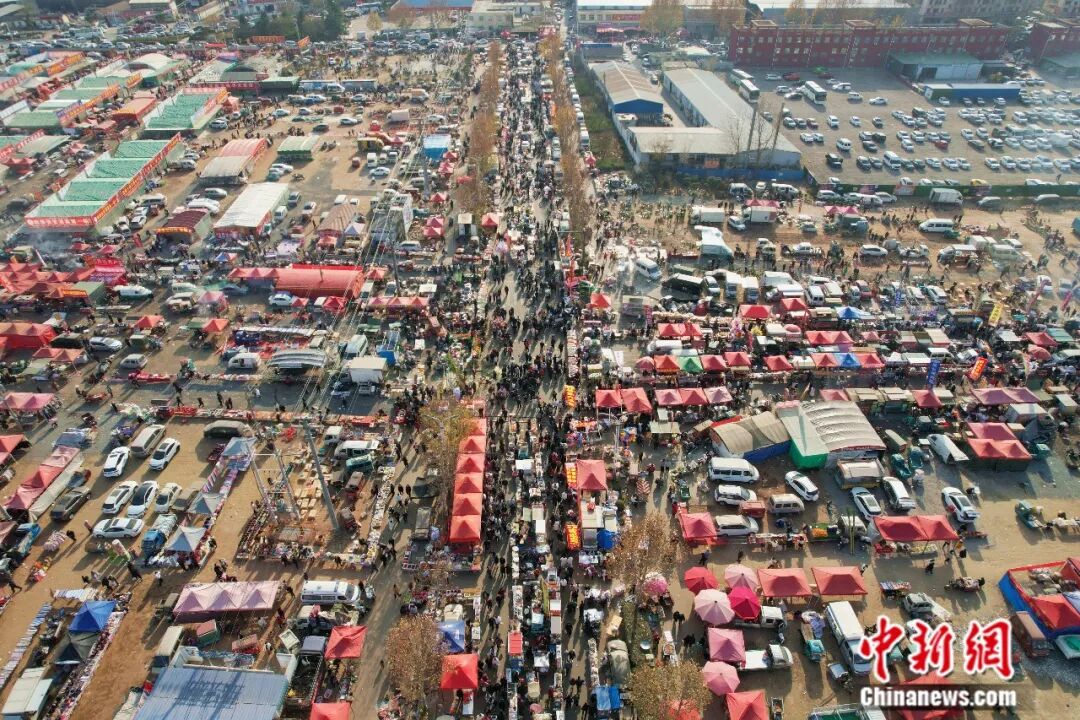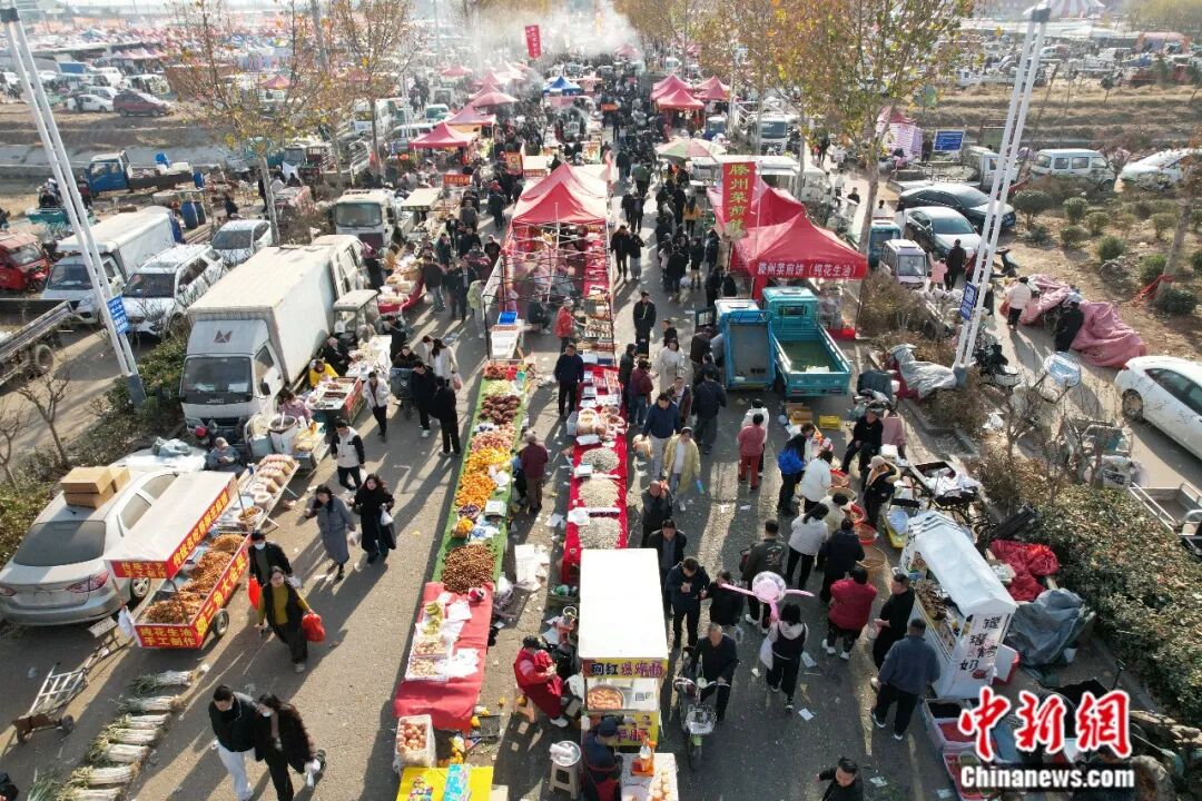 12月8日,临沂曹洼大集热闹开场。(无人机照片)王峰 摄