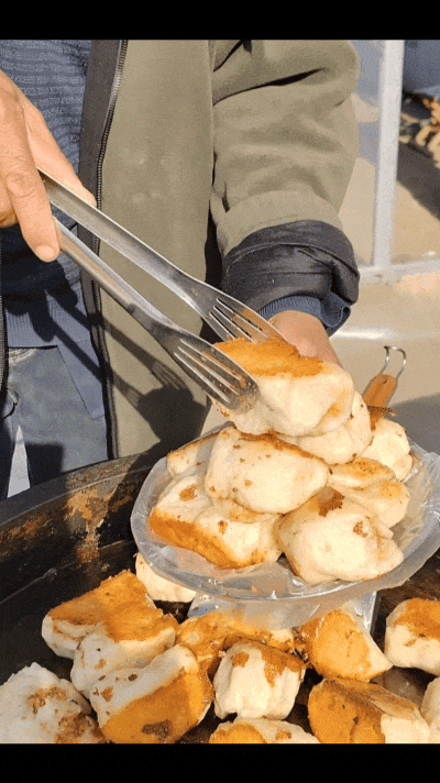 5毛一个的油煎包满口爆汁,