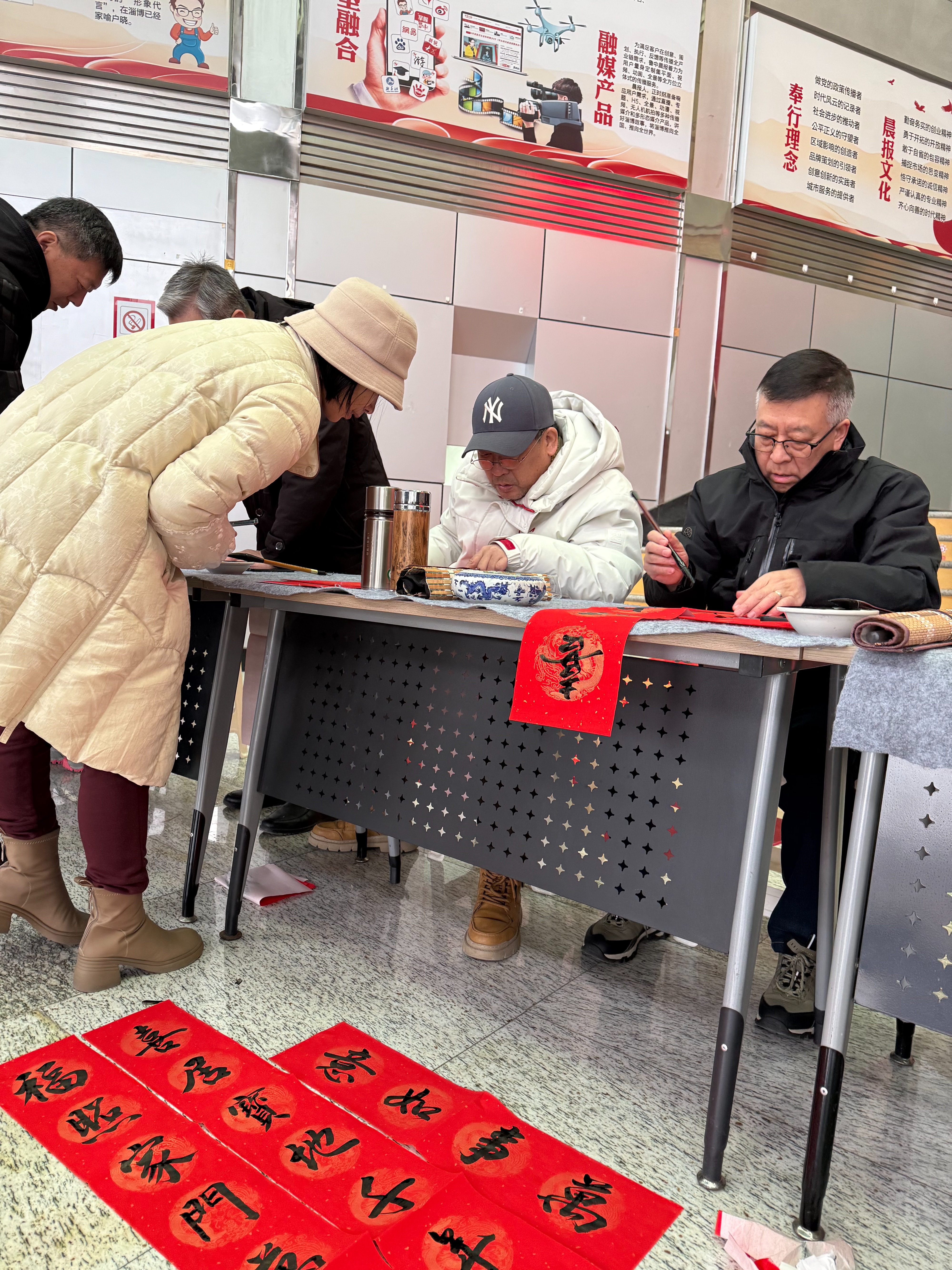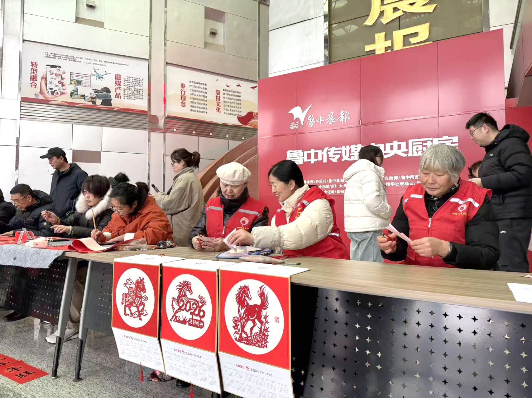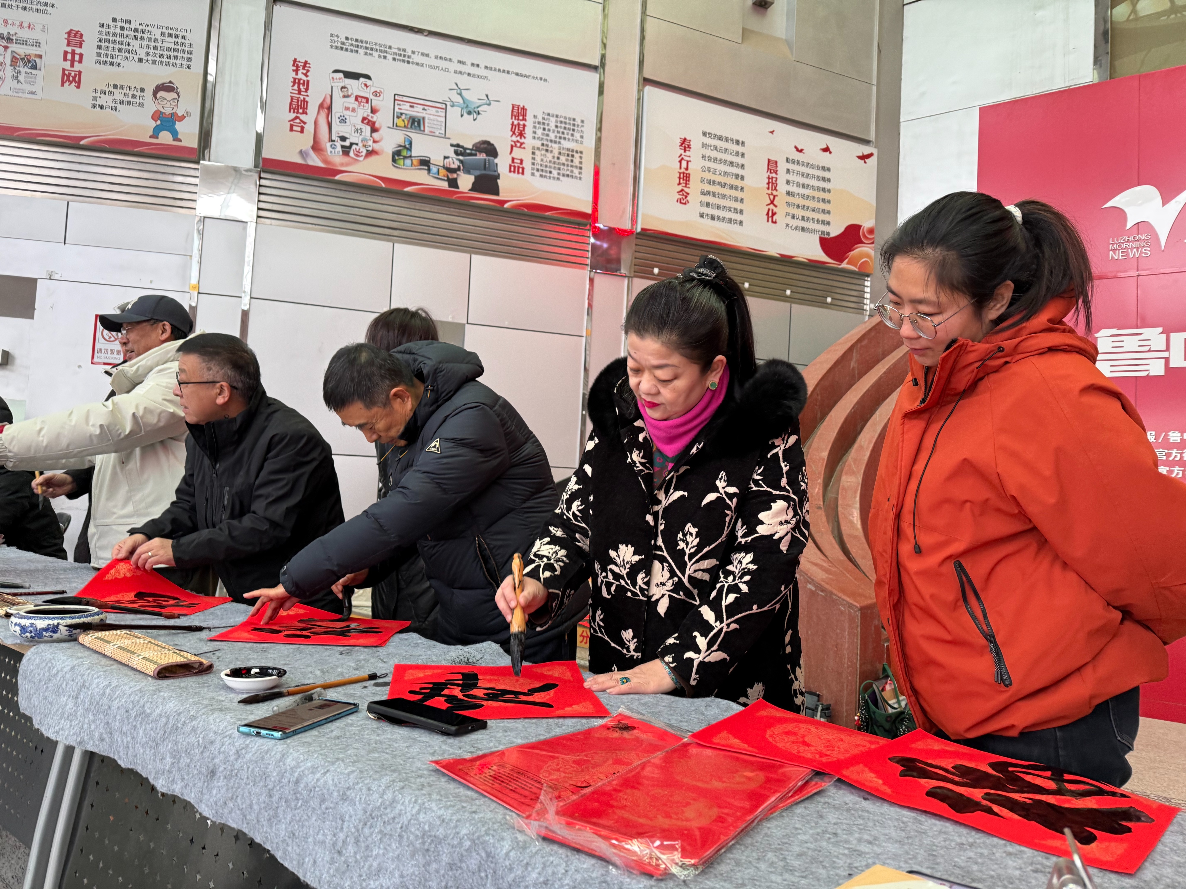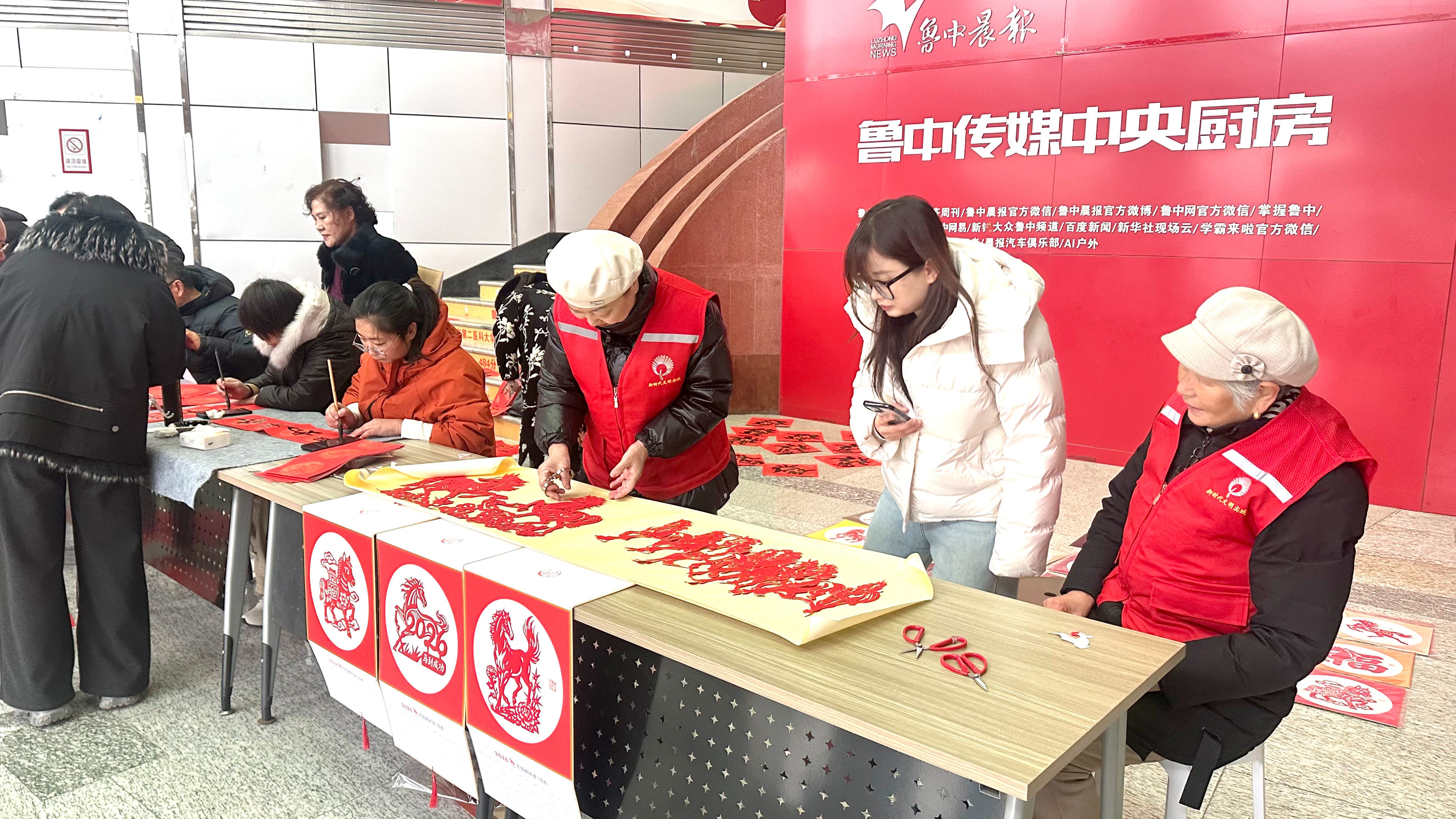腊八一到,年味拉满!1月26日正值腊八佳节,鲁中晨报老年大学“送春联”活动,在晨报大厦一楼大厅热闹开场。书法班学员们挥毫泼墨写春联、绘福字,非遗传承人同步巧手剪窗花,大红宣纸铺展成海,墨香混着剪纸的烟火气漫满全场,把冬日大厅烘得暖意融融,让市民在传统民俗里提前解锁马年新春的喜庆滋味!