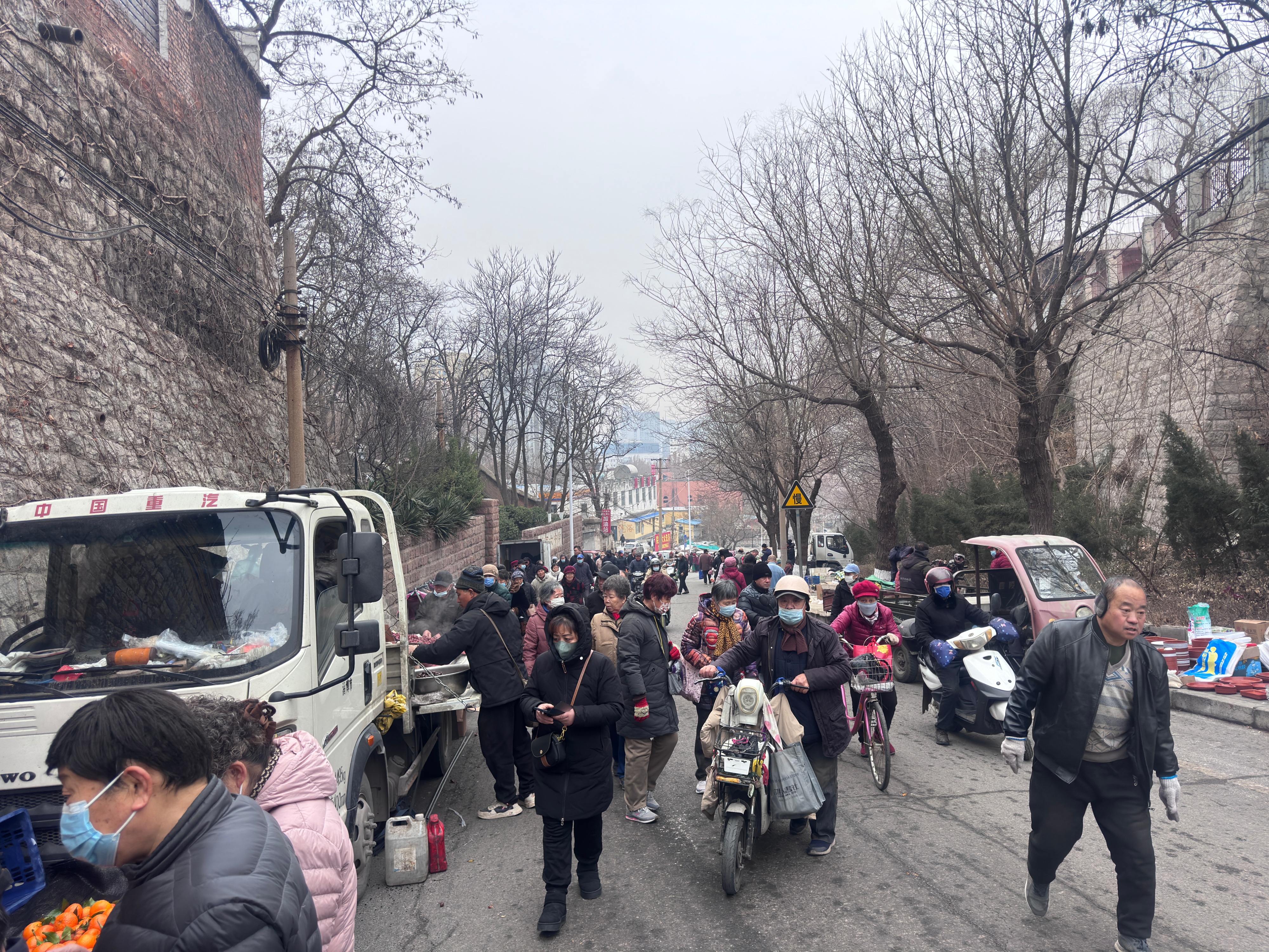 天还没完全亮透,街口已经有人推着小车进场,占位、支棚、卸货,铁皮摩擦声、三轮车的“突突”声、彼此打招呼的寒暄声,很快把冬日清晨点燃。2026年1月26日,农历腊月初八,早上6点,我们从张店出发,博山区青龙山,去赶一场当地人最熟悉、也最有分量的集市——博山大集。