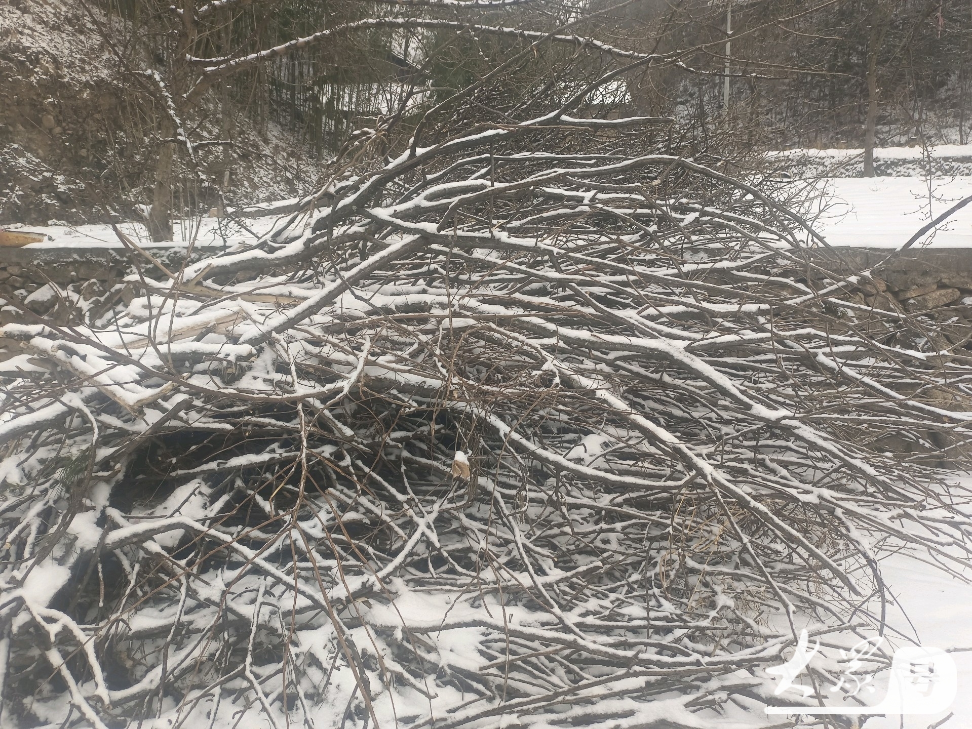 扫过之处,一道干净的小径蜿蜒向前,在茫茫素白间勾勒出温柔的弧线,如同以帚为笔,以雪为墨,在乡野这张巨幅宣纸上,写下最质朴的诗行。溪边的柿树落尽了叶,枝桠间坠着的残柿,在雪的映衬下像点点红灯,添了几分人间暖意;邻家的土院墙头,雪落得匀净,偶尔有麻雀掠过,留下几行浅浅的爪印,转瞬又被新雪轻覆。不远处的麦田,雪层厚密,像盖了床蓬松的棉被,老农说“瑞雪兆丰年”,这无声的雪,原是藏了对来年的期许,在冬日里默默守护着田畴的生机。