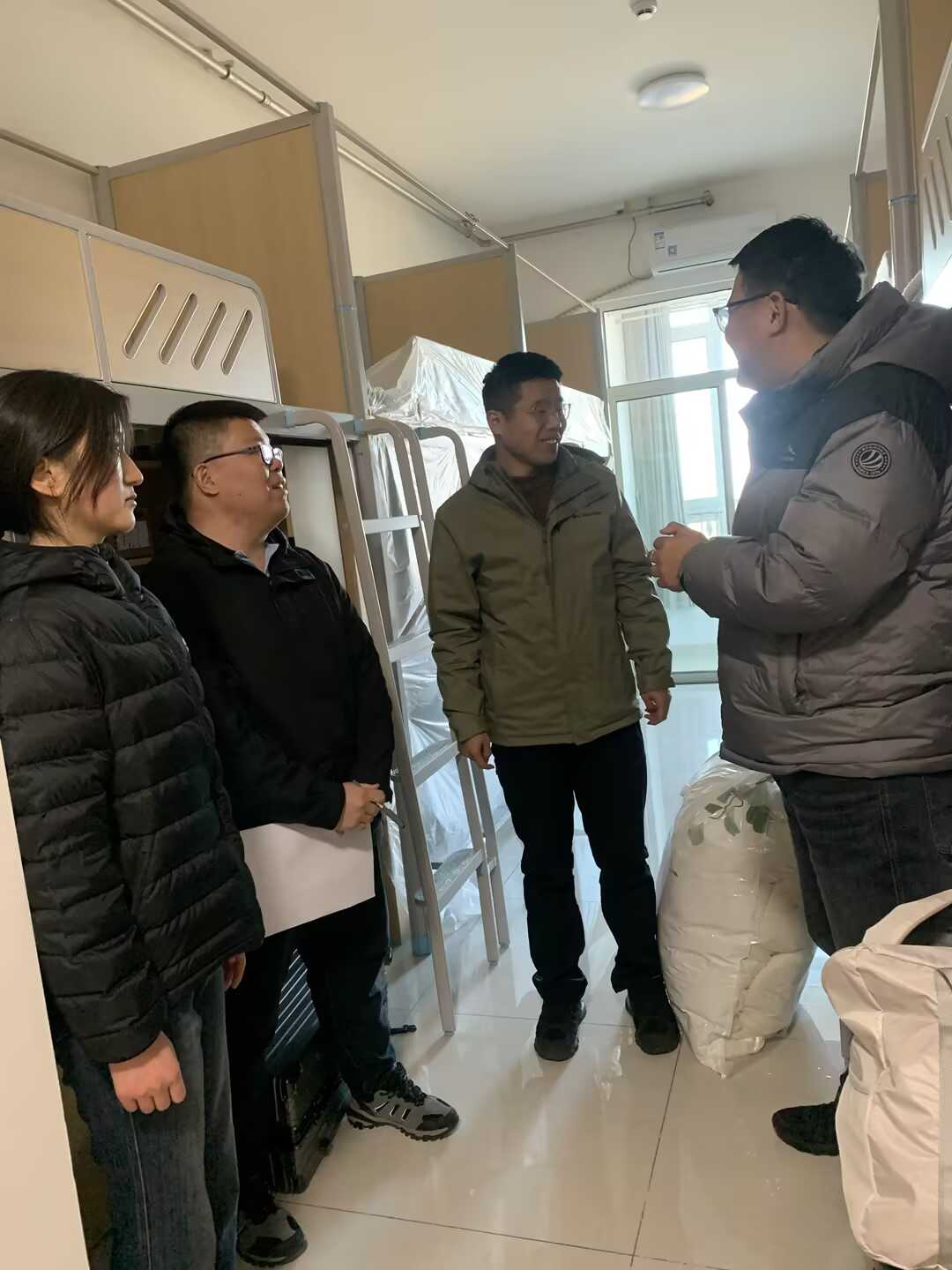 商贸学院党支部副负责人刘志男带领辅导员开展返校学生走访慰问工作,走进宿舍与学生面对面交流,详细询问返校行程、身体状况、学业规划及生活困难,为学生答疑解惑。他鼓励同学们尽快收心归位,树立安全与自律意识,珍惜时光、提升自我,并叮嘱辅导员密切关注学生思想动态,做好帮扶工作,让学生感受学院温暖,增强归属感。