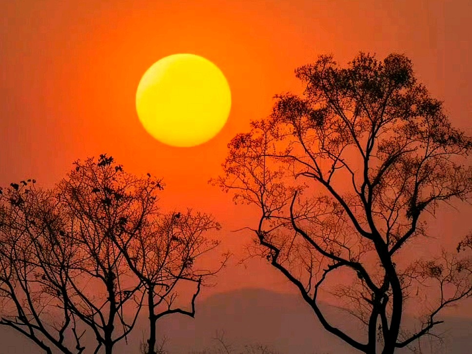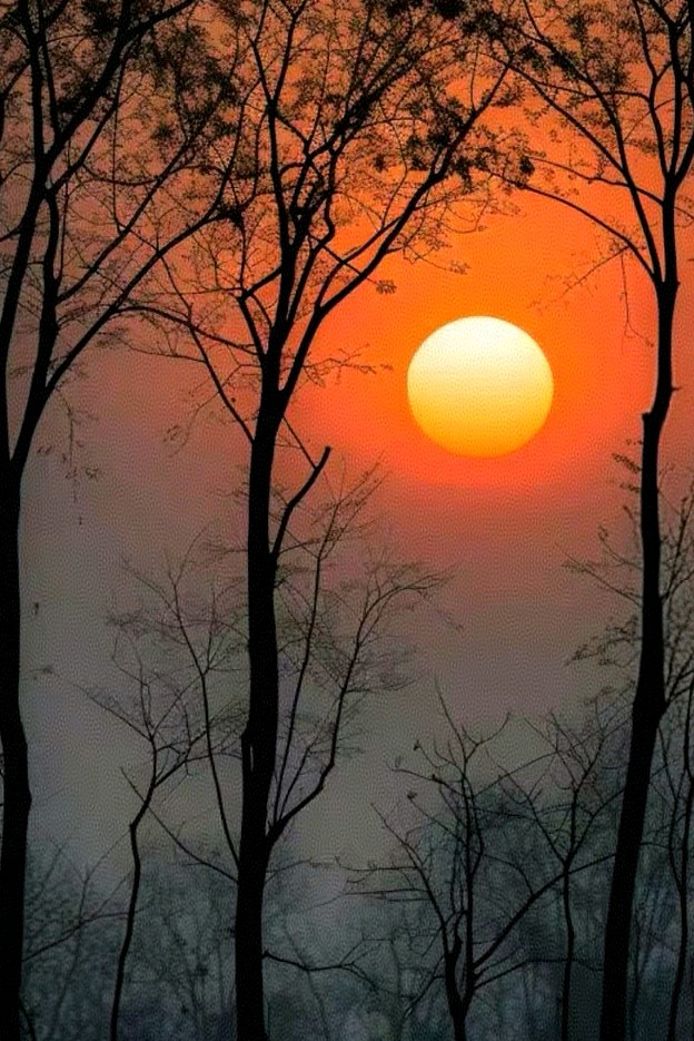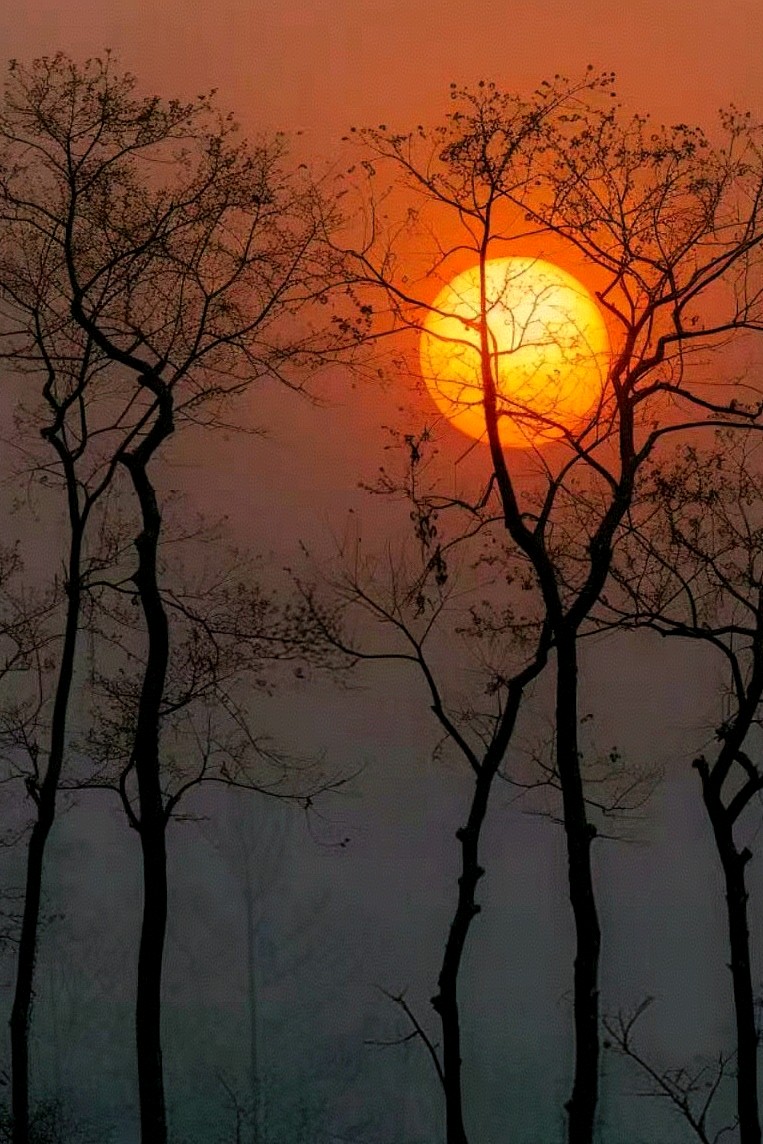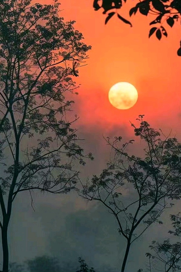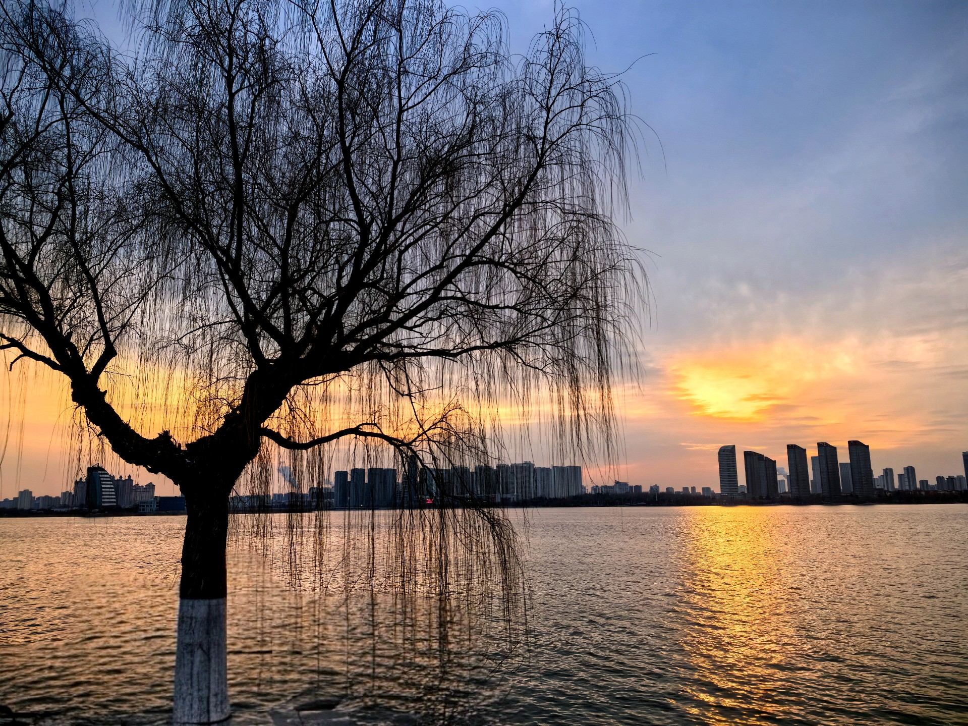 冬日的下午,橙色的落日,映照在滨河公园的树林里,让你享受此刻的美好时光。