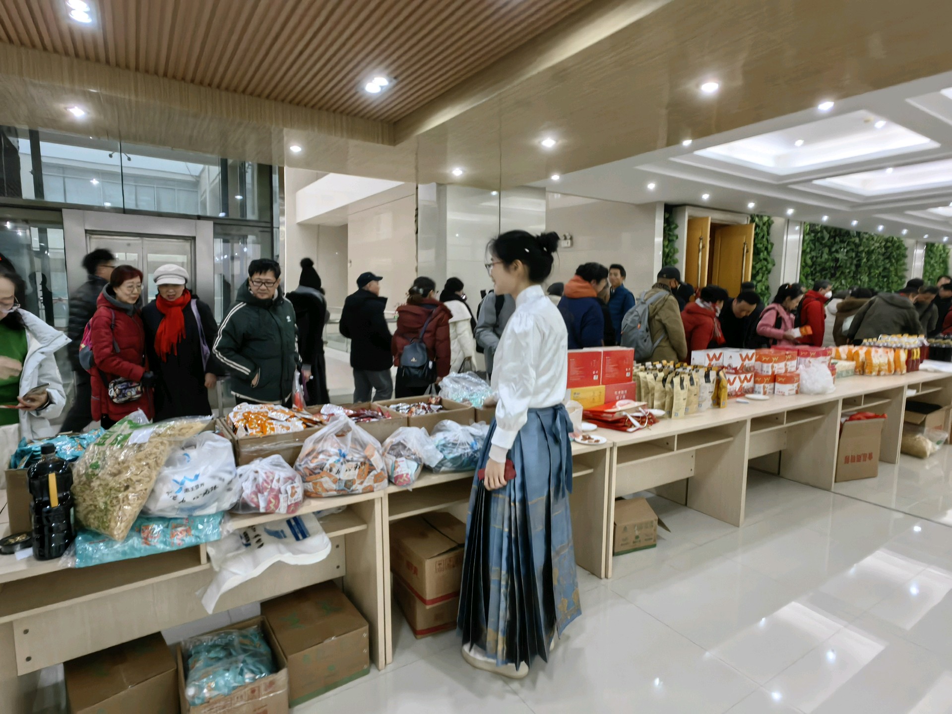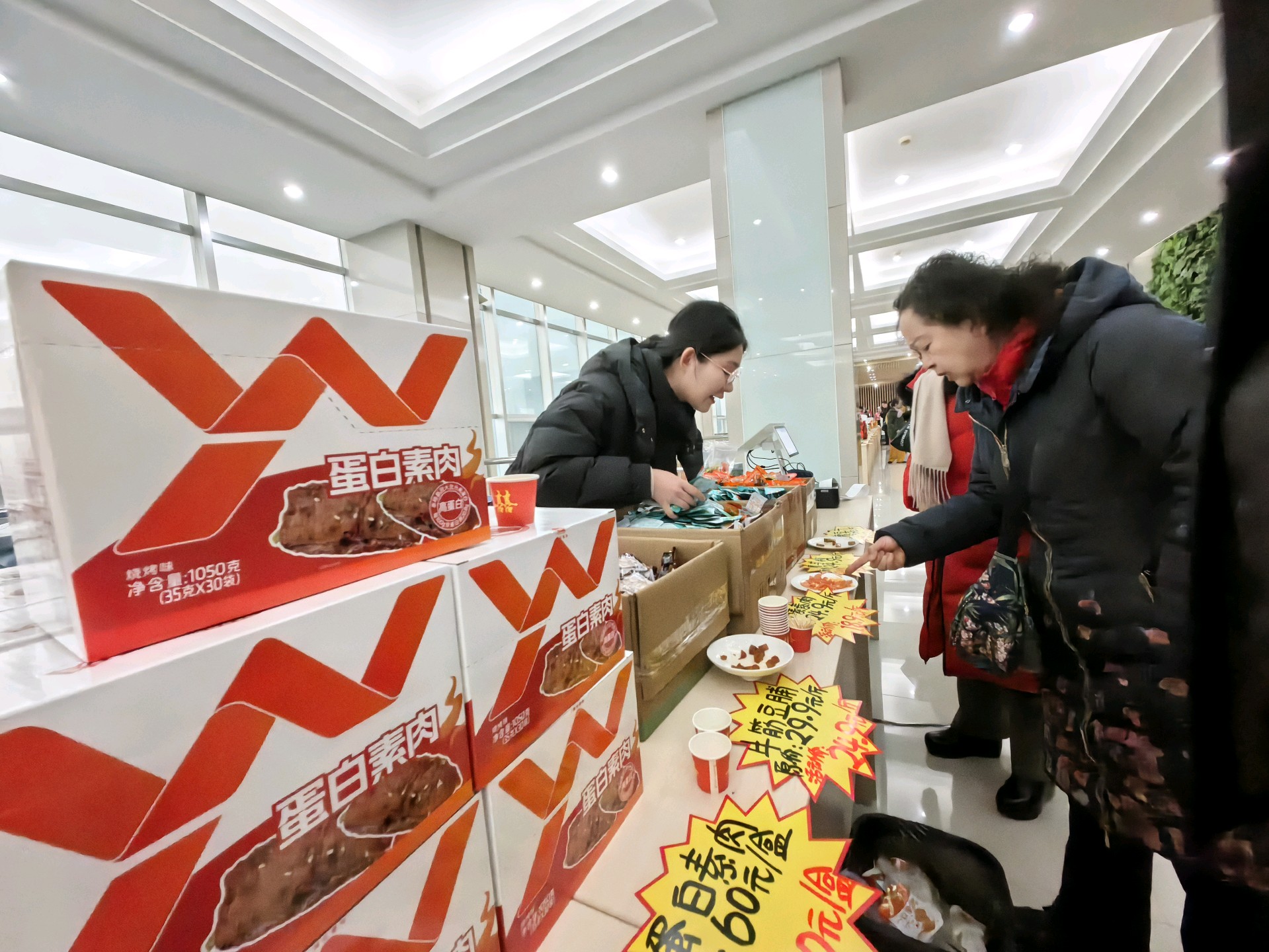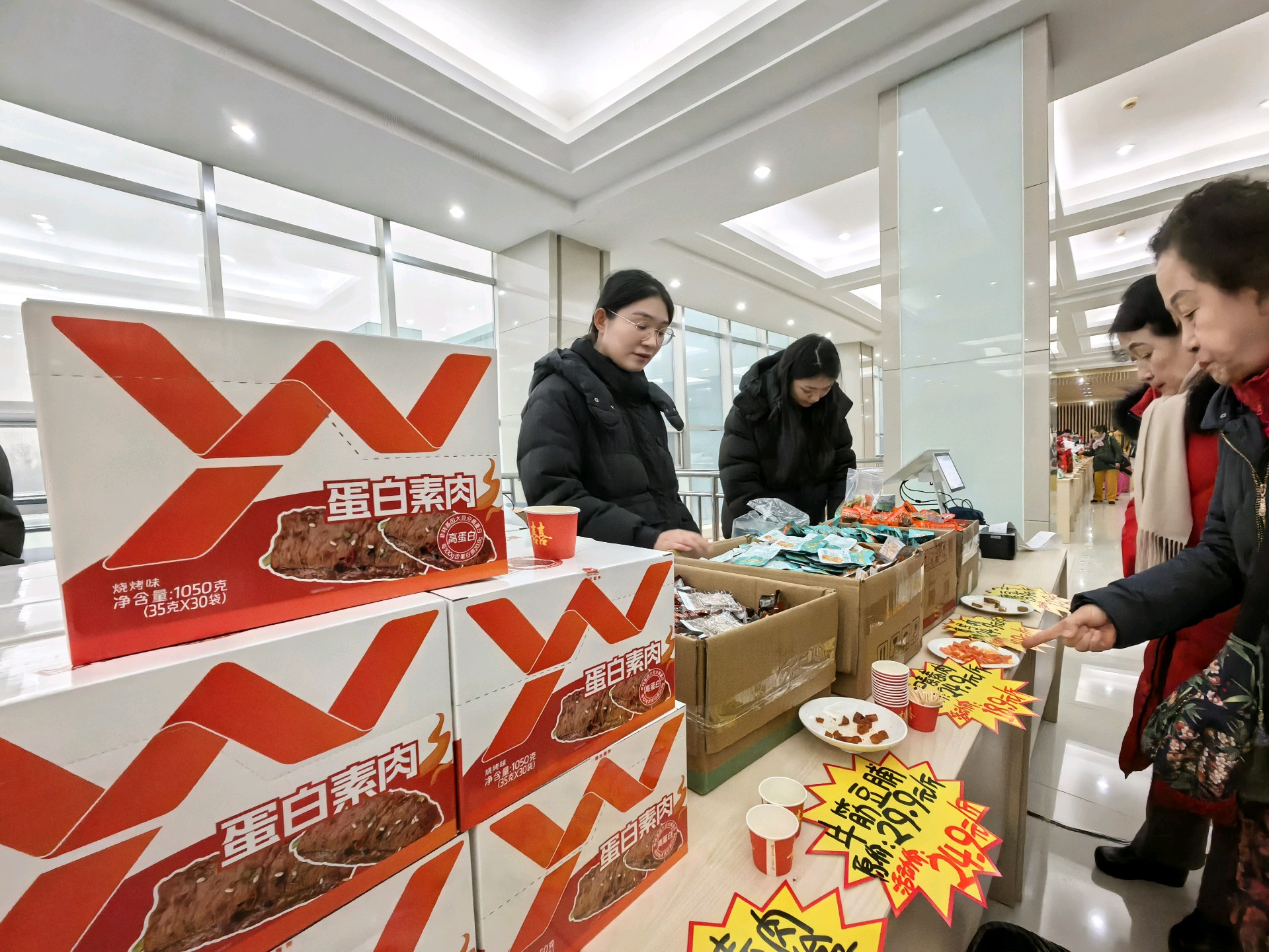 年关将至,超市打折促销,商品琳琅满目。大家快来抢购年货吧!