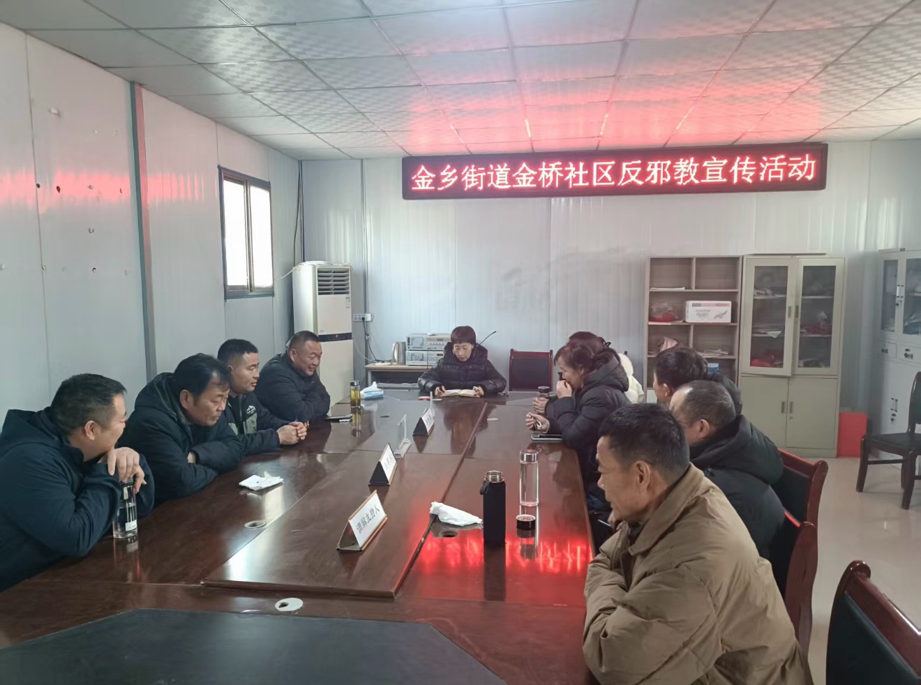 为切实加强反邪教宣传教育,引导广大居民树立正确的世界观、人生观和价值观,金乡街道金桥社区组织开展反邪教主题宣传活动,增强居民自觉抵制邪教组织诱惑和渗透的能力,巩固基层思想文化阵地,维护社会大局稳定。