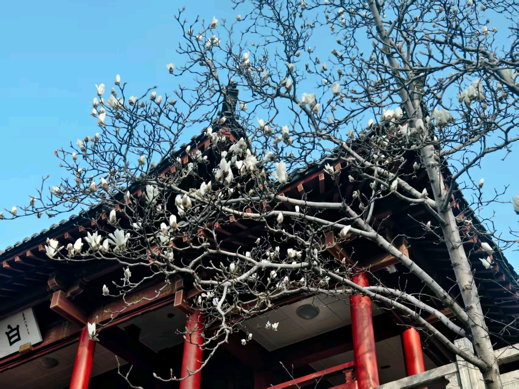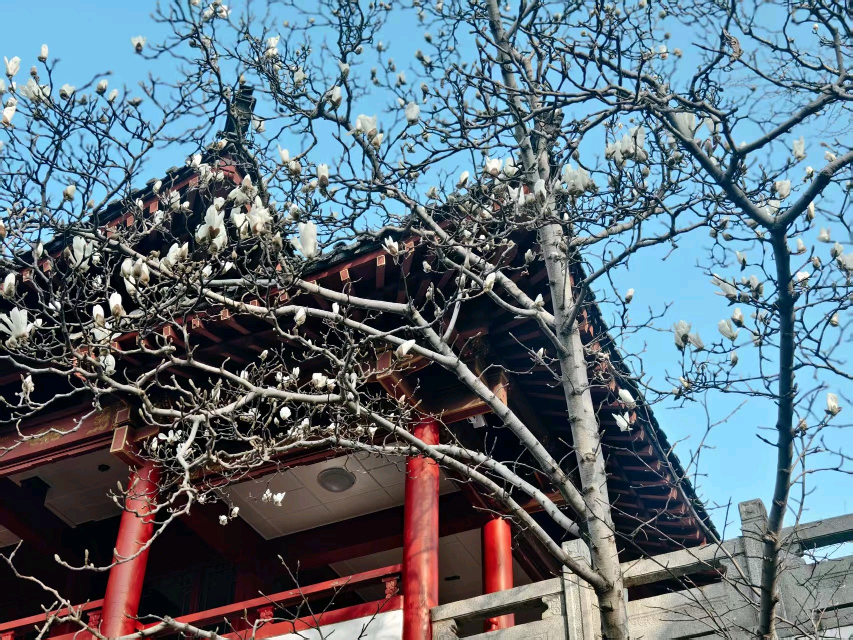 趵突泉白雪楼一侧的白玉兰渐次开花了,洁白的兰花吸引了大批游客的眼球。许多游客掏出手机拿起相机拍照打卡留念。