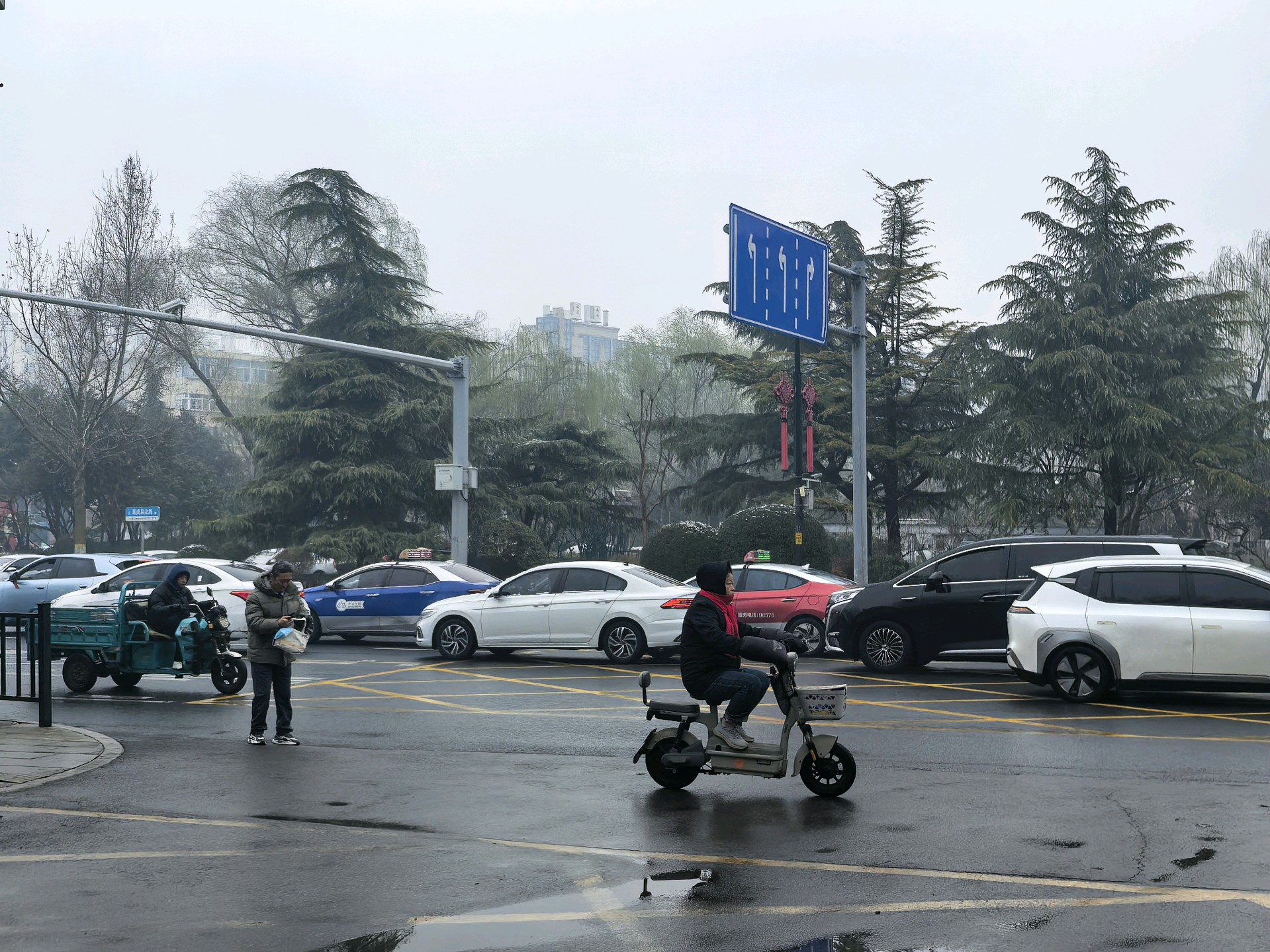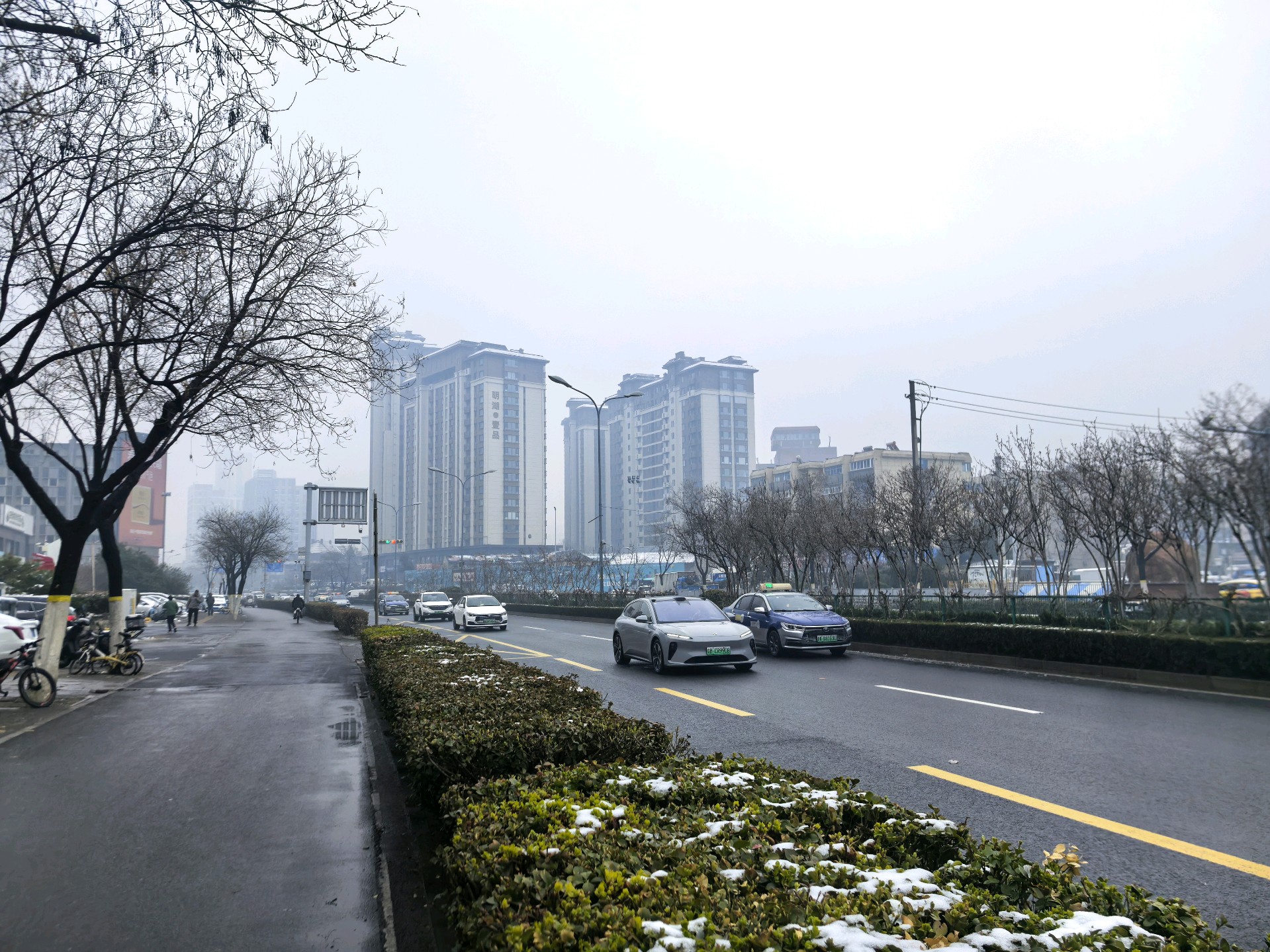 今天清晨小雨小雪之后,大雾从天而降,市区车辆纷纷打开雾灯缓慢而行,远处的高楼若隐若现朦朦胧胧,犹如空中楼阁。