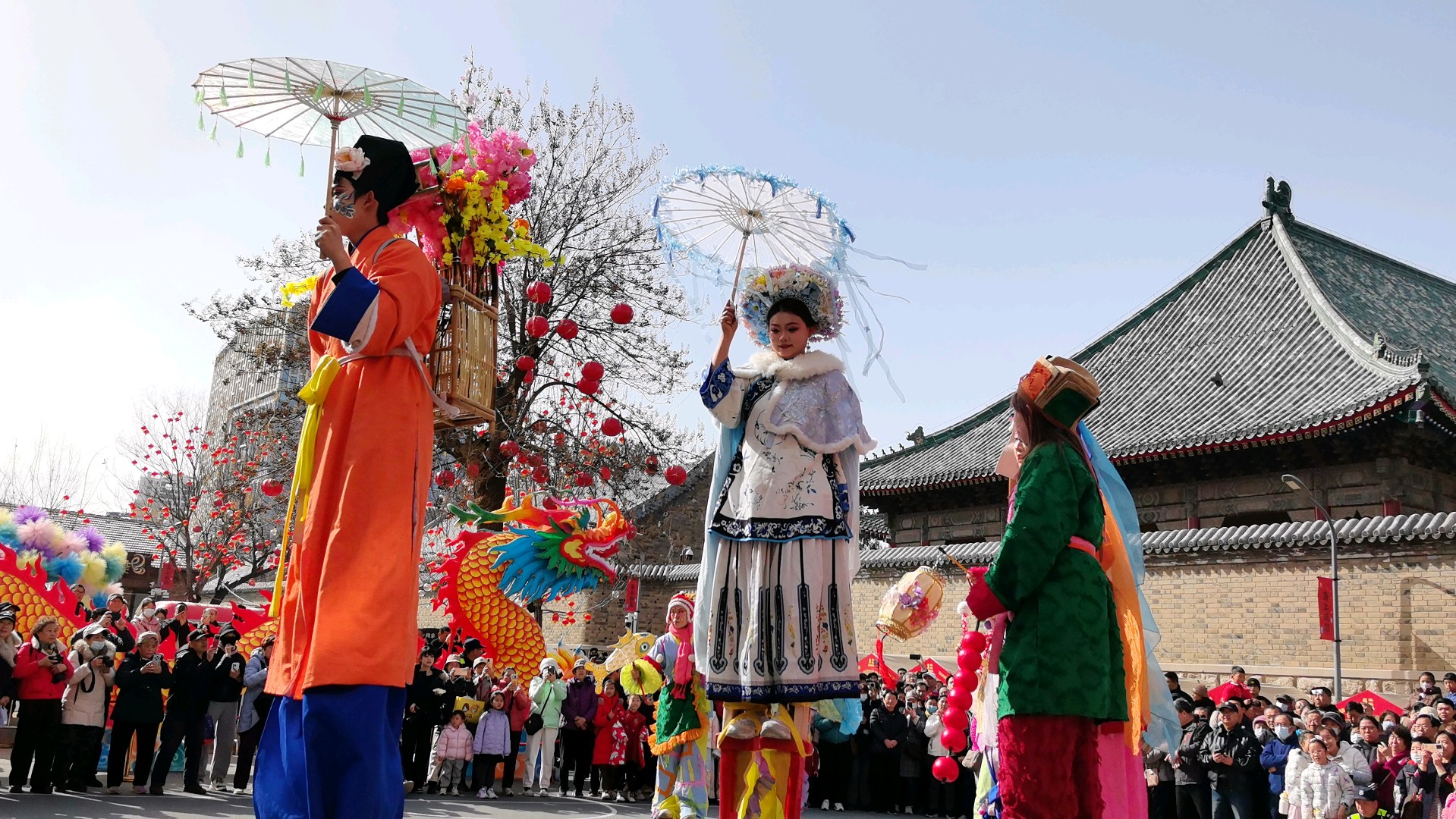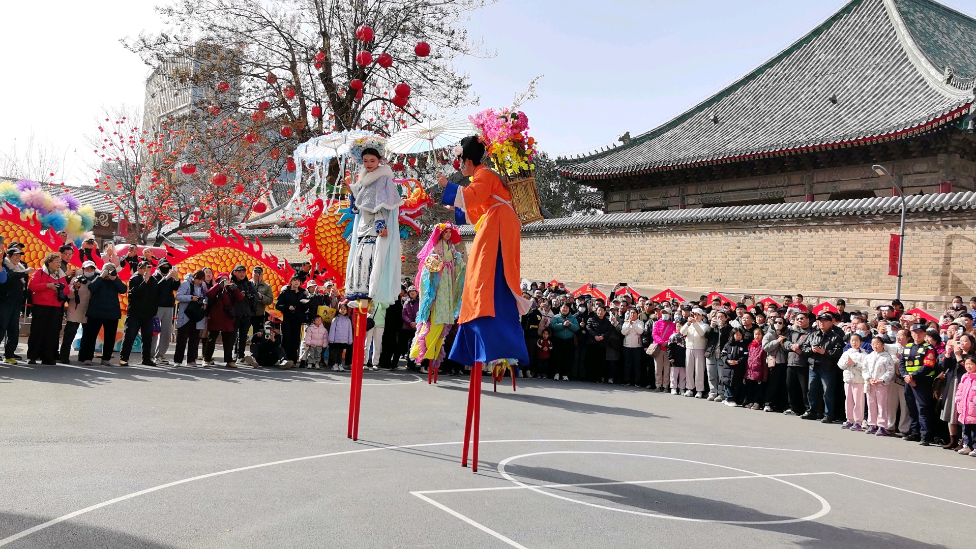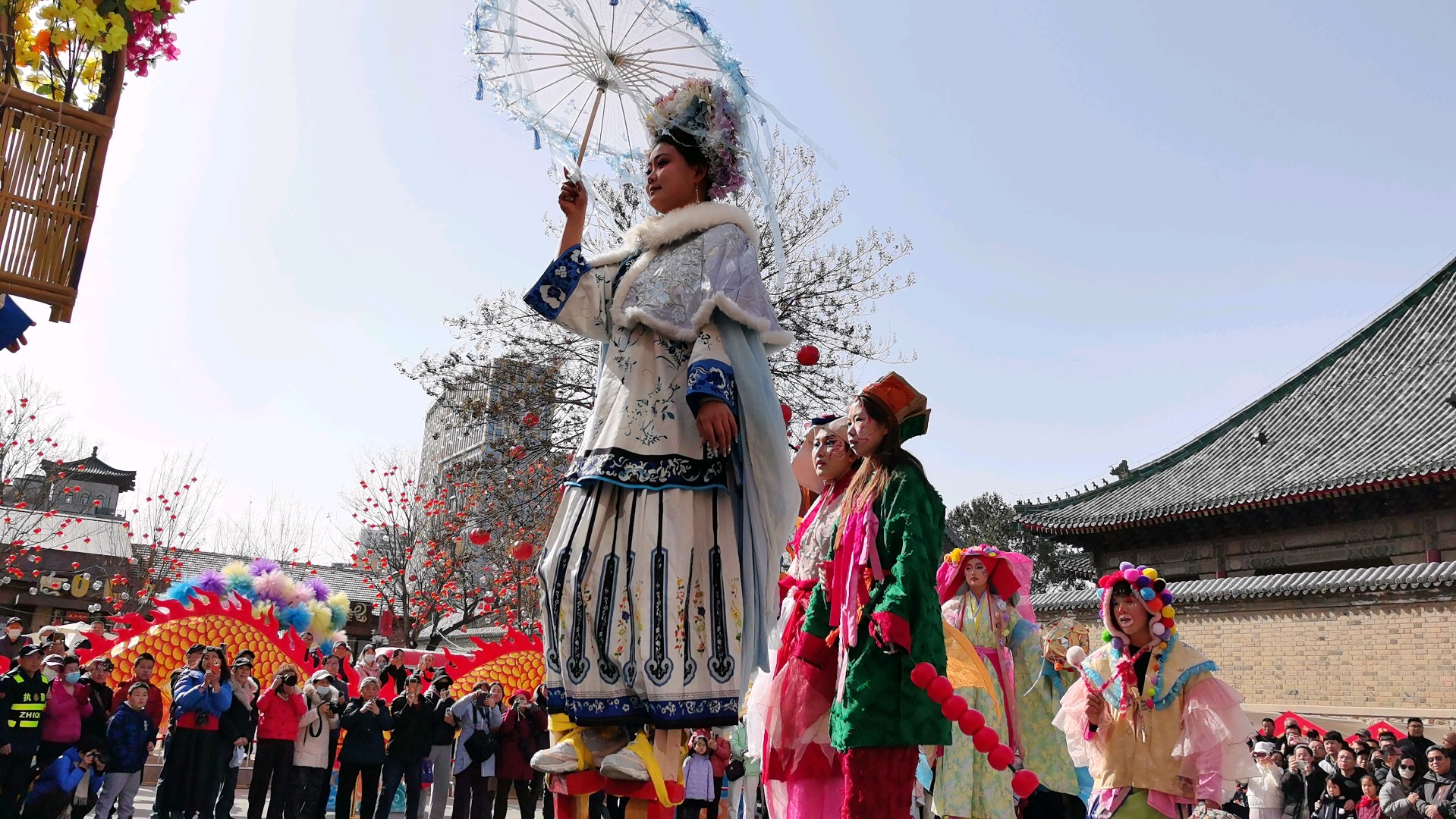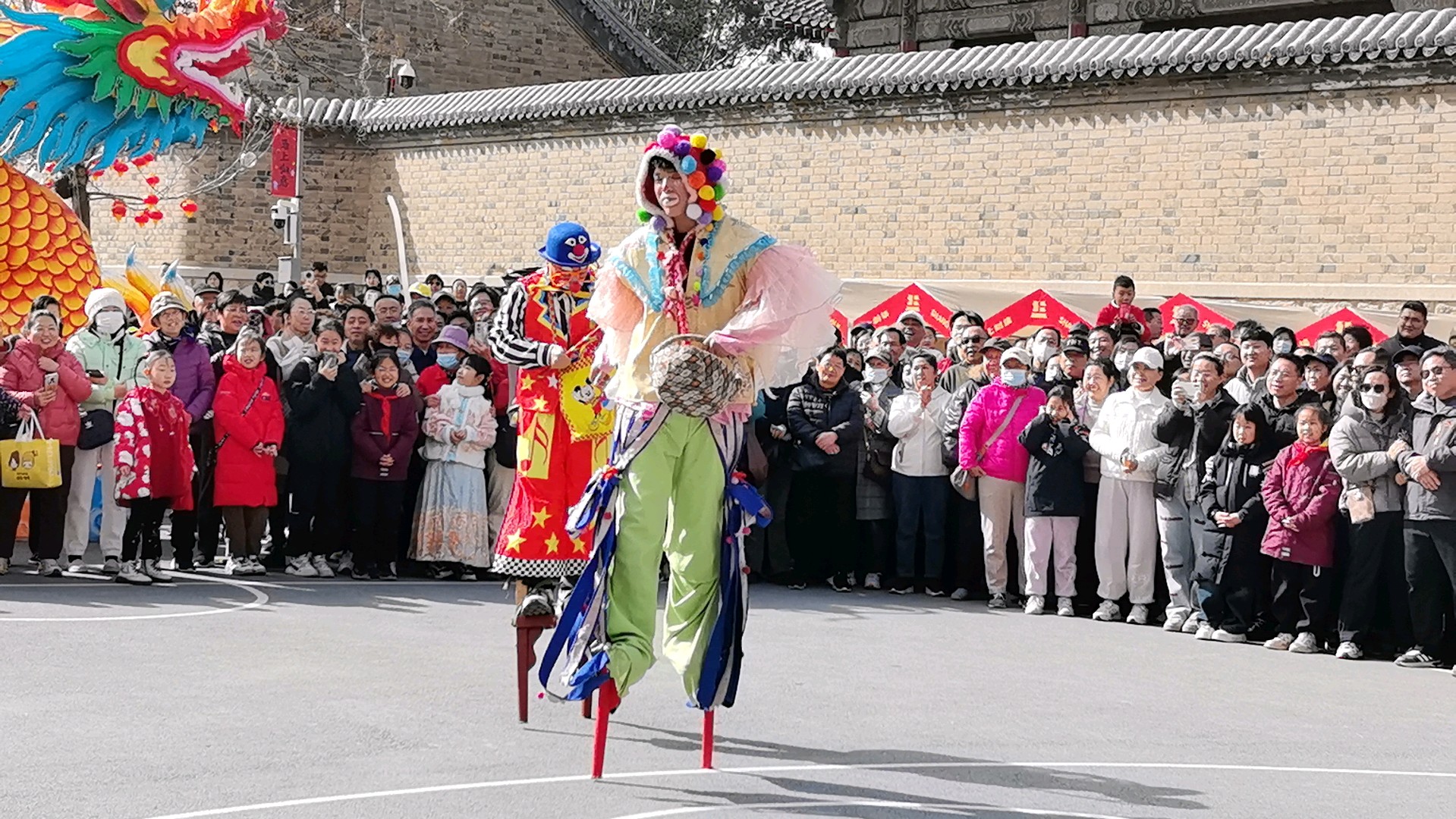 当十五高跷队的鼓点骤然炸响,一场力与美的盛宴便在街巷间澎湃铺展。队员们足踏丈余高跷,却步履如履平地,腾挪跳跃间,身姿似矫健的飞燕,翻腾如灵动的蛟龙,每一个动作都精准利落,将高跷技艺的惊险与娴熟演绎得淋漓尽致。