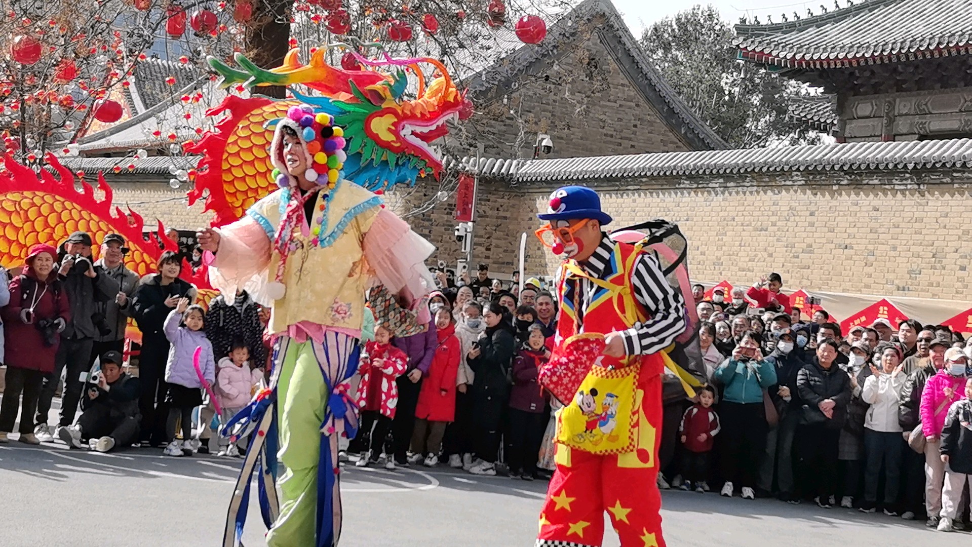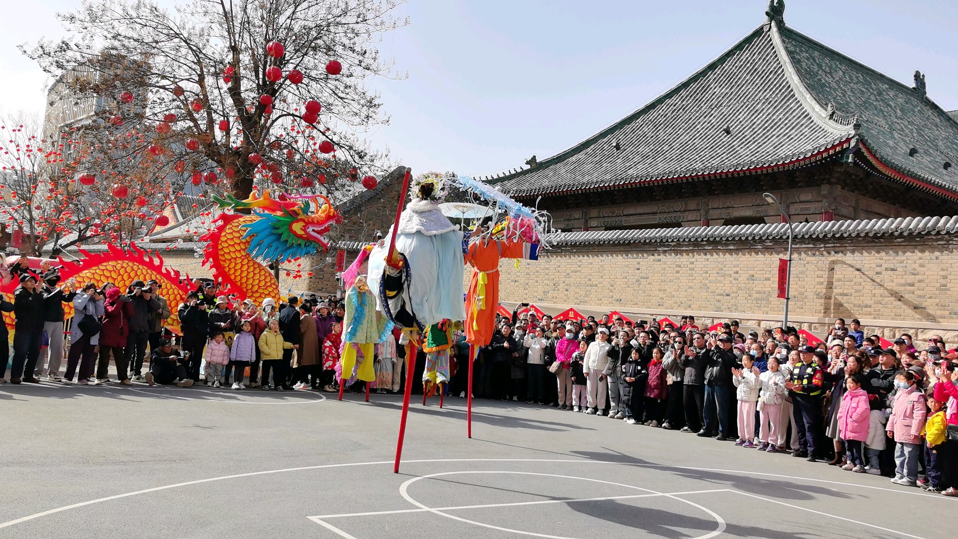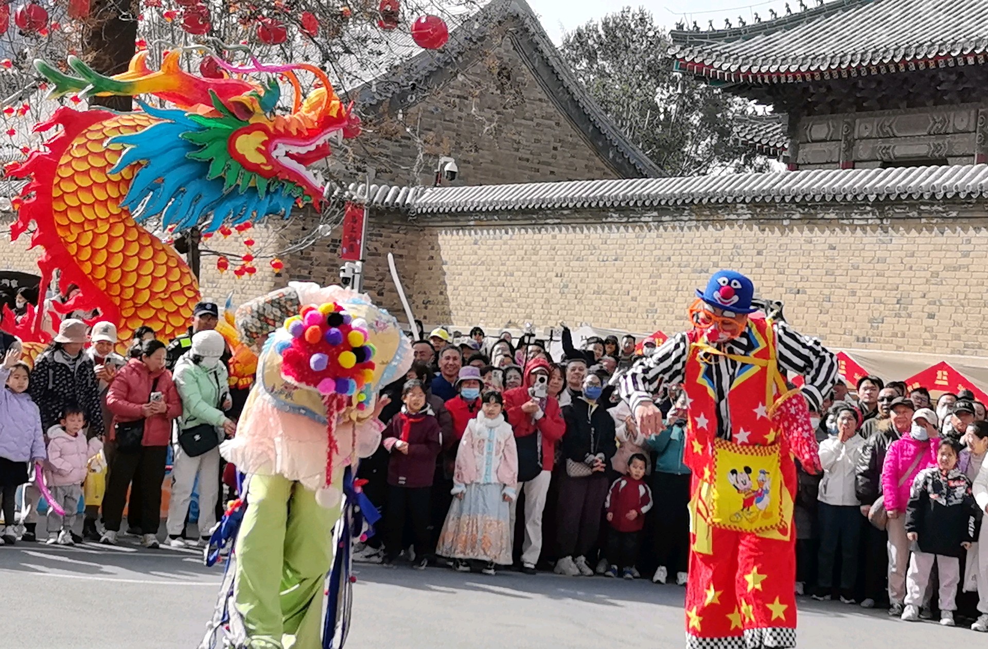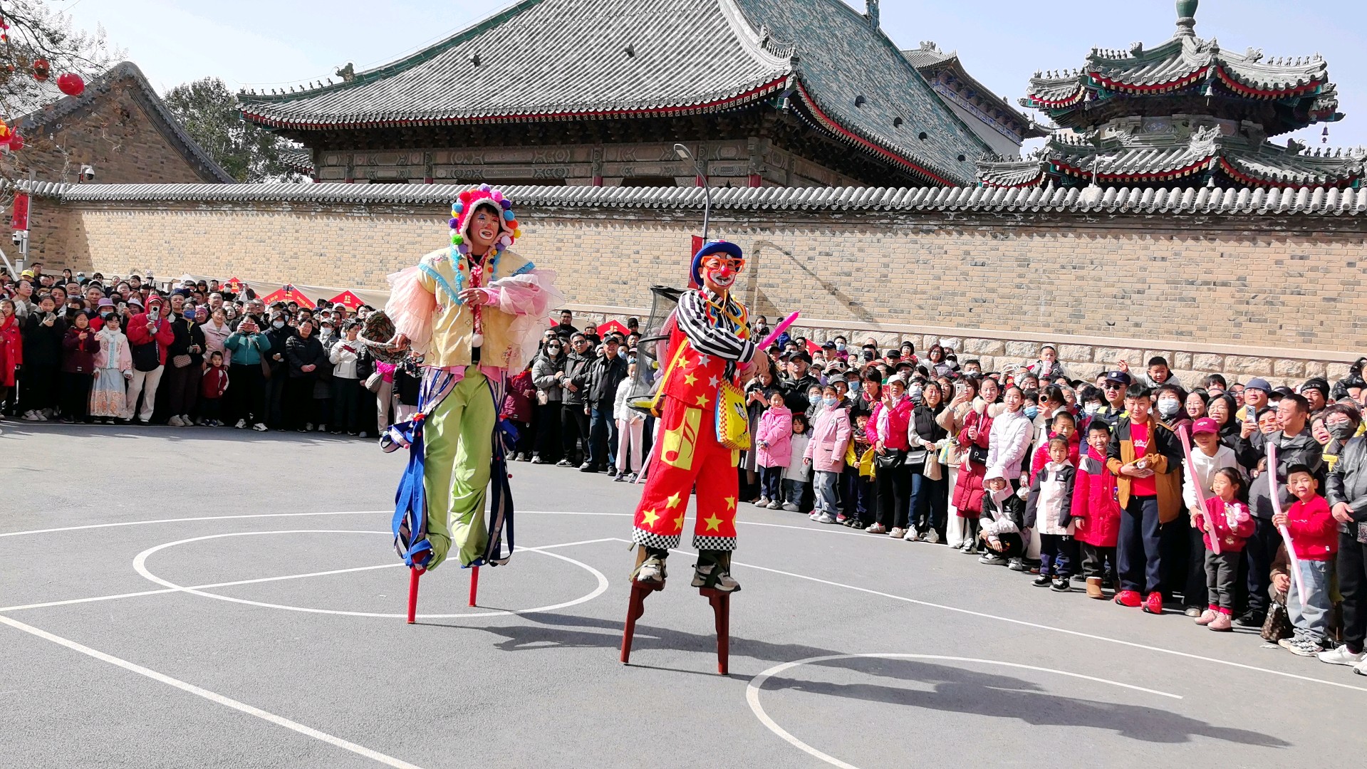 当十五高跷队的鼓点骤然炸响,一场力与美的盛宴便在街巷间澎湃铺展。队员们足踏丈余高跷,却步履如履平地,腾挪跳跃间,身姿似矫健的飞燕,翻腾如灵动的蛟龙,每一个动作都精准利落,将高跷技艺的惊险与娴熟演绎得淋漓尽致。