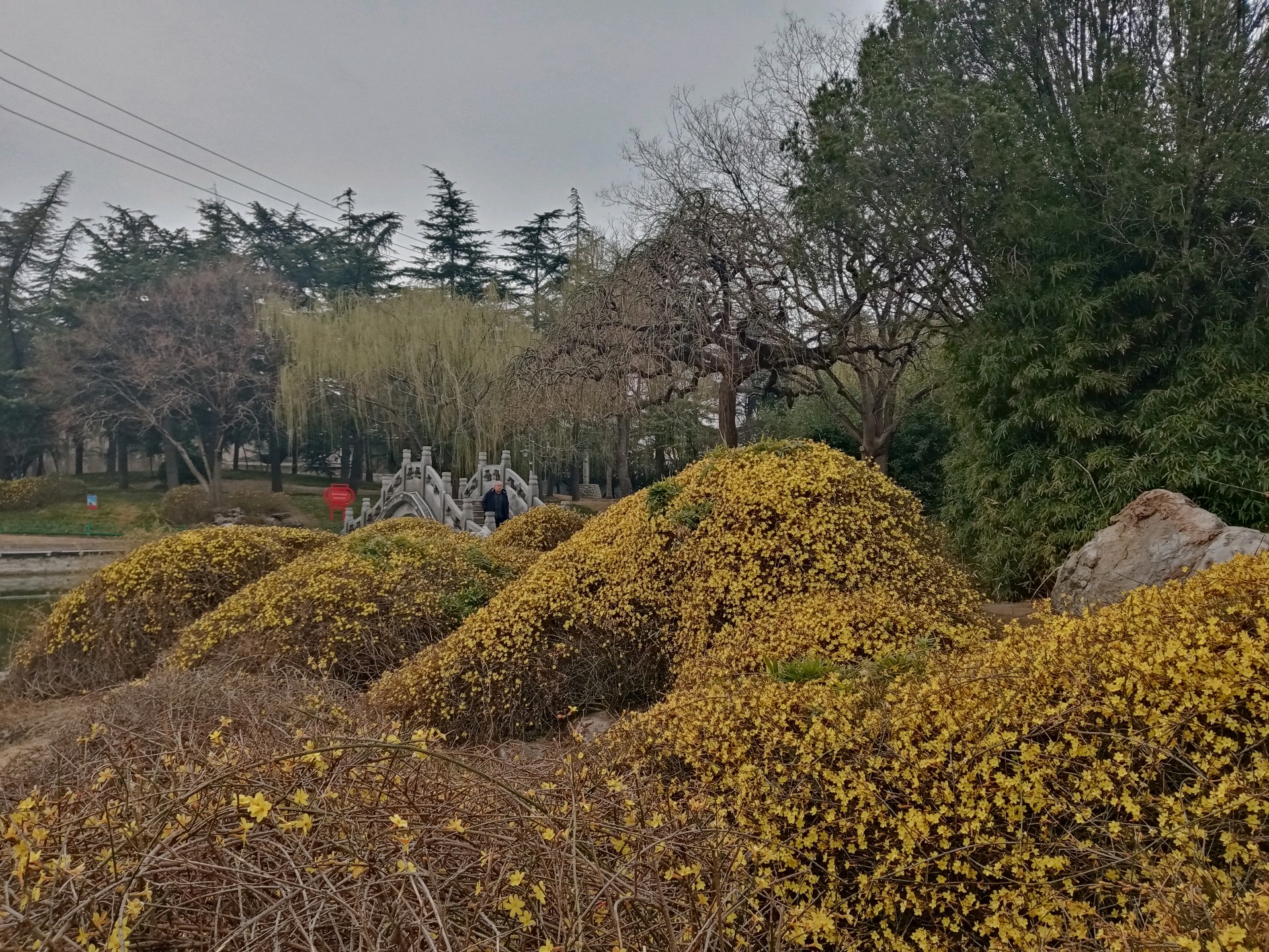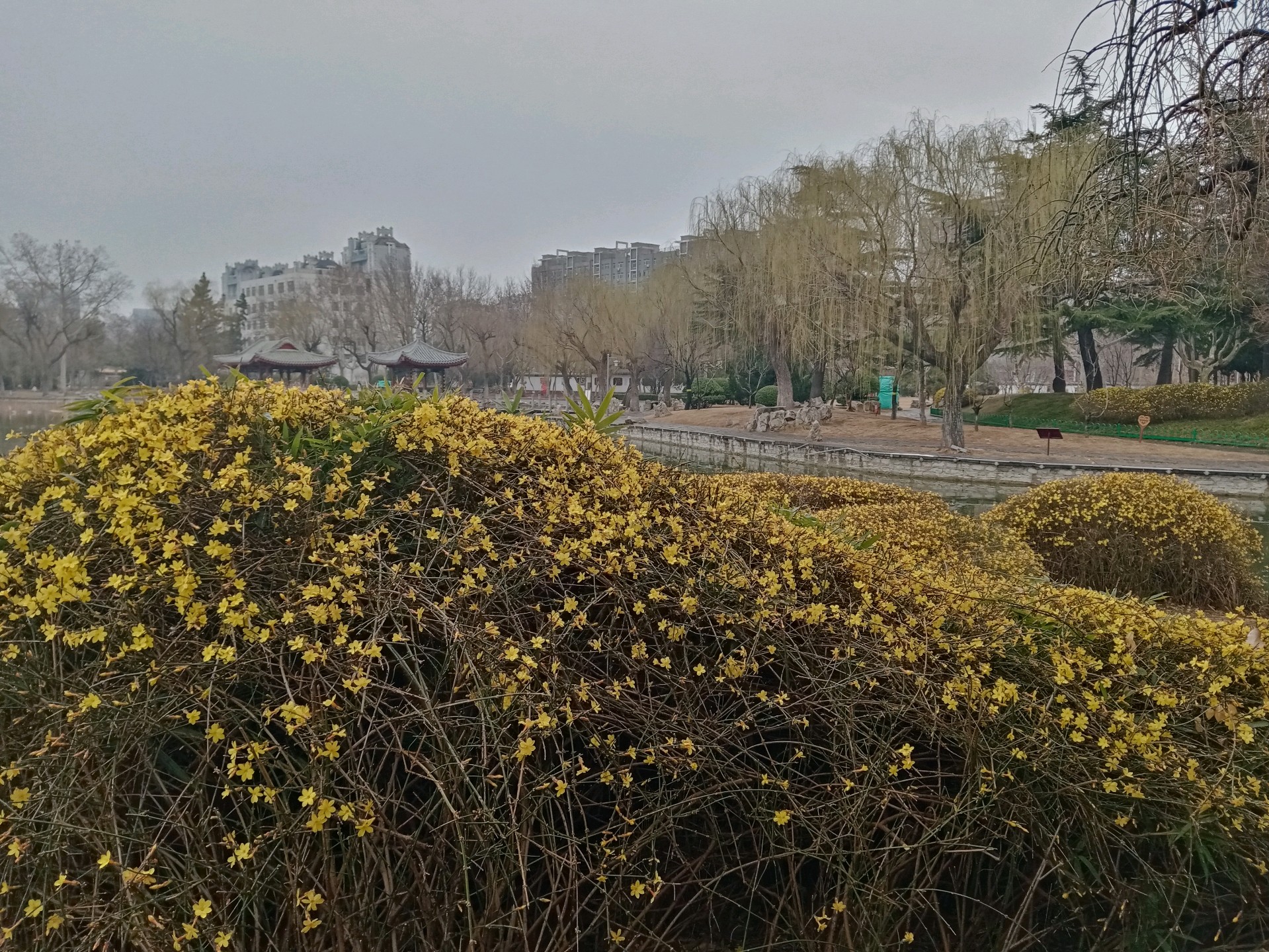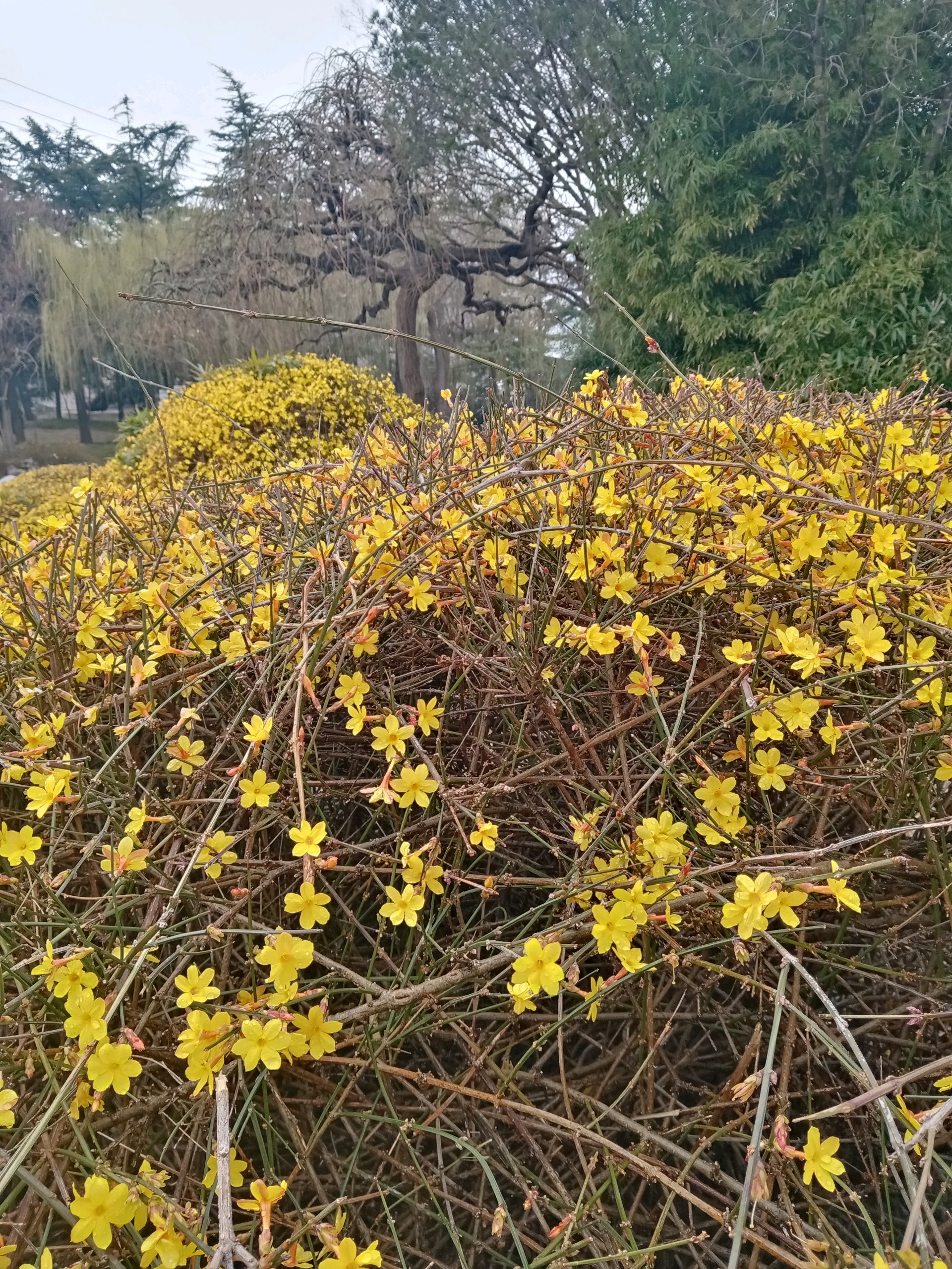 自怡园的迎春花开了,娇艳的黄色花朵缀满枝条,把初春的园林装扮得如诗如画。