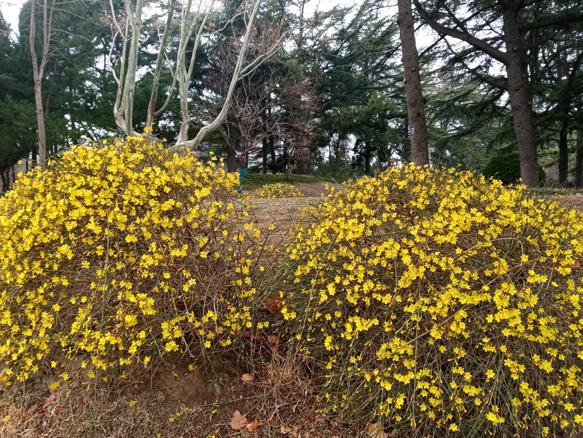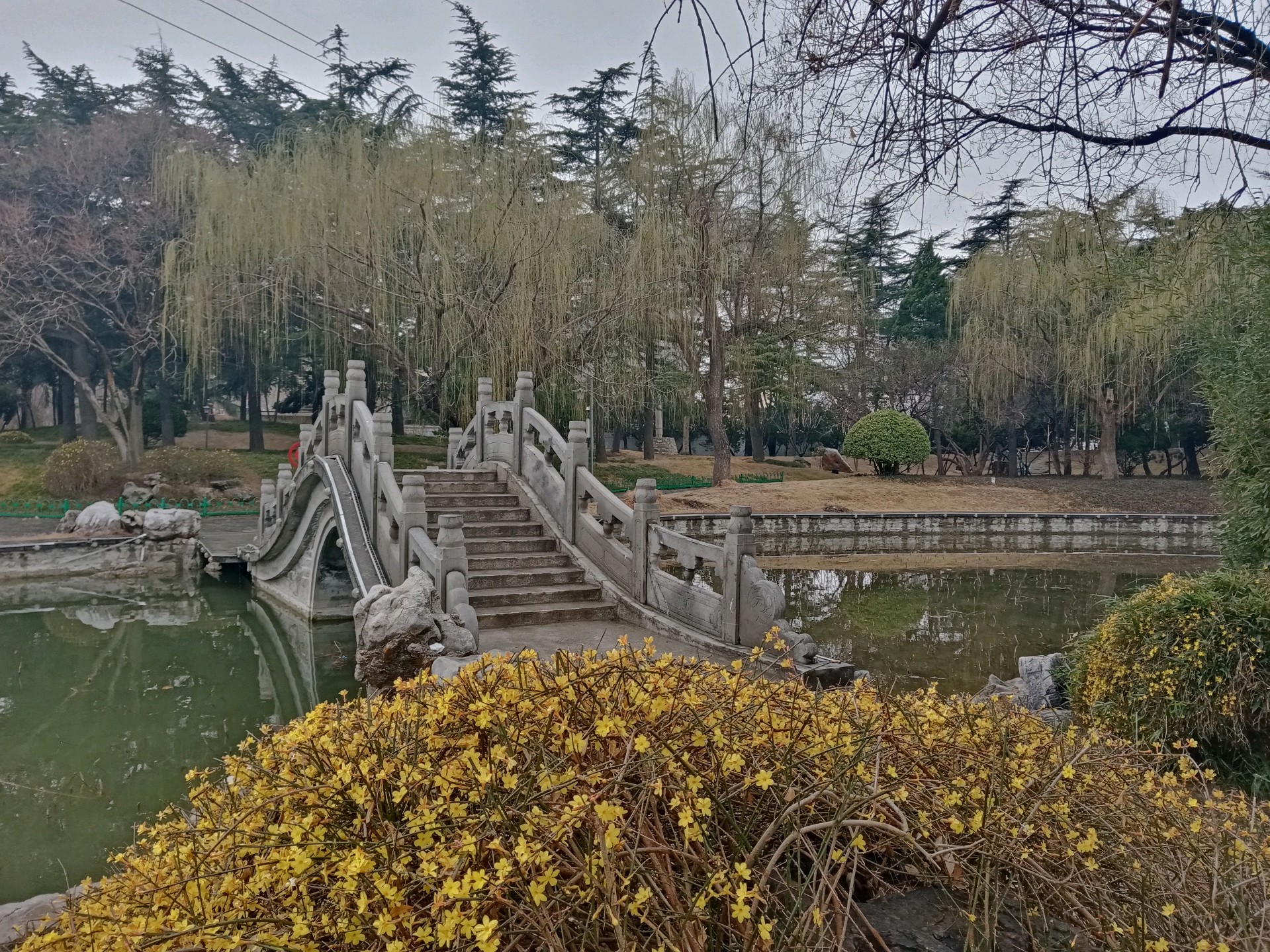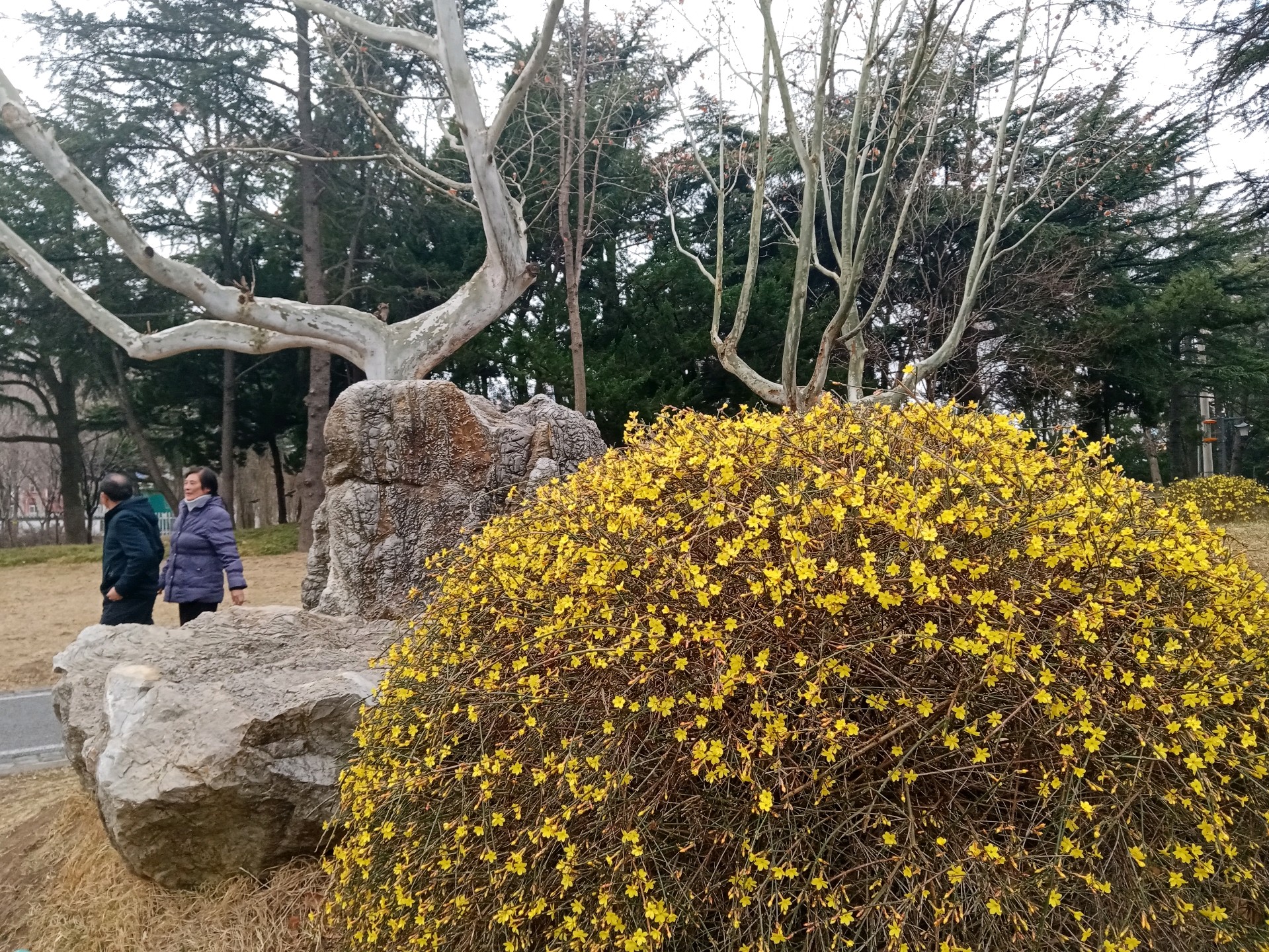 自怡园的迎春花开了,娇艳的黄色花朵缀满枝条,把初春的园林装扮得如诗如画。