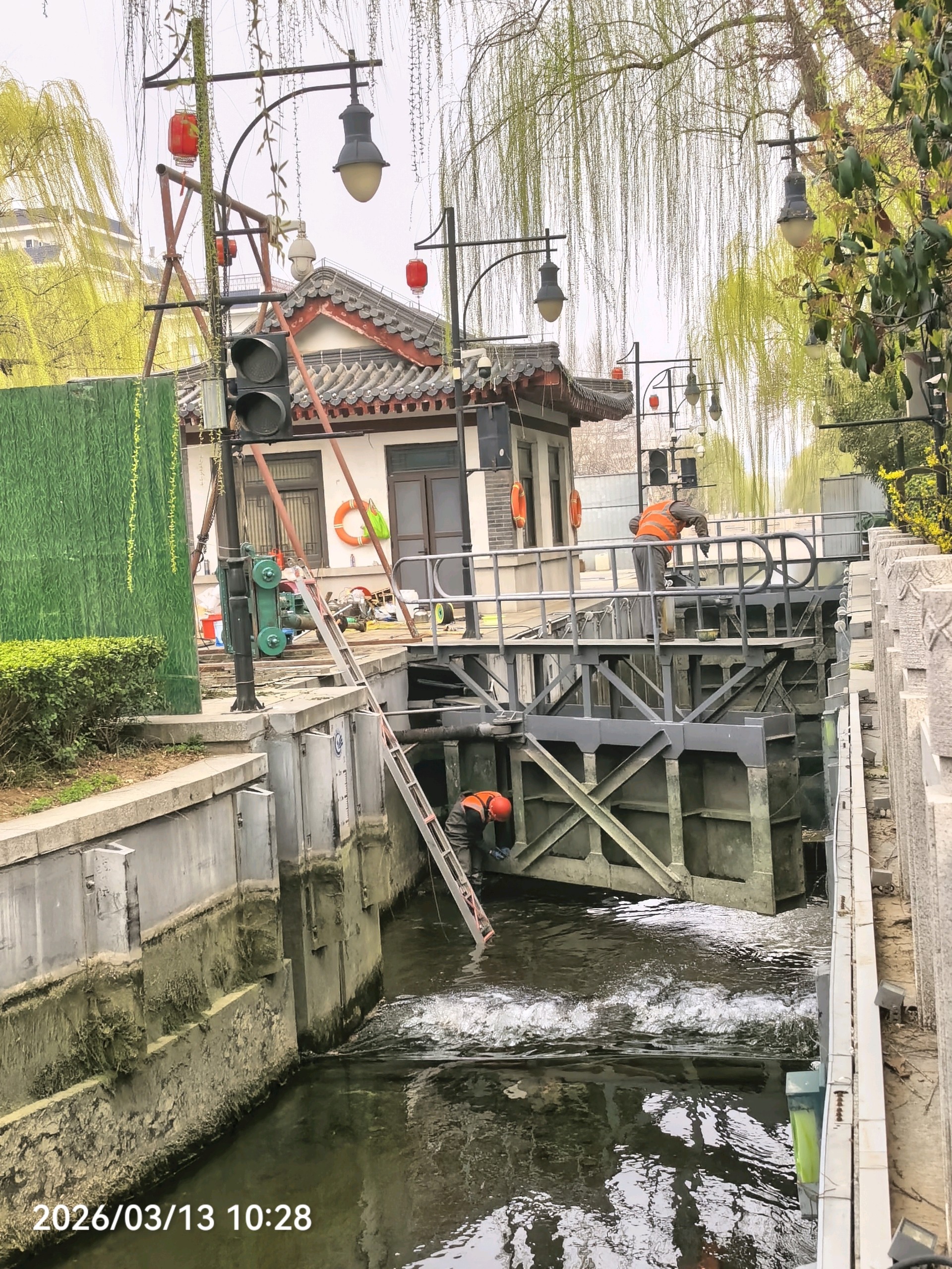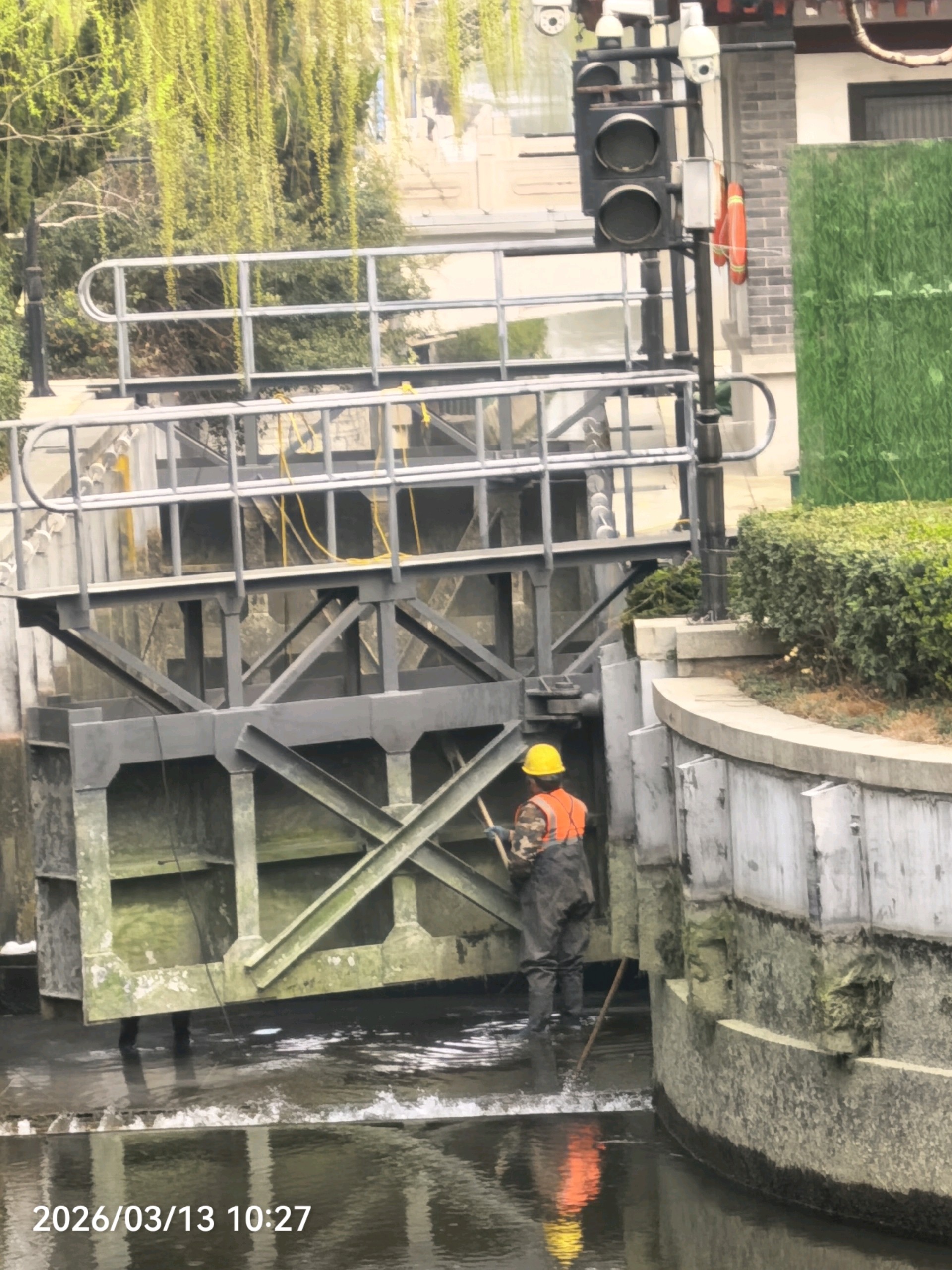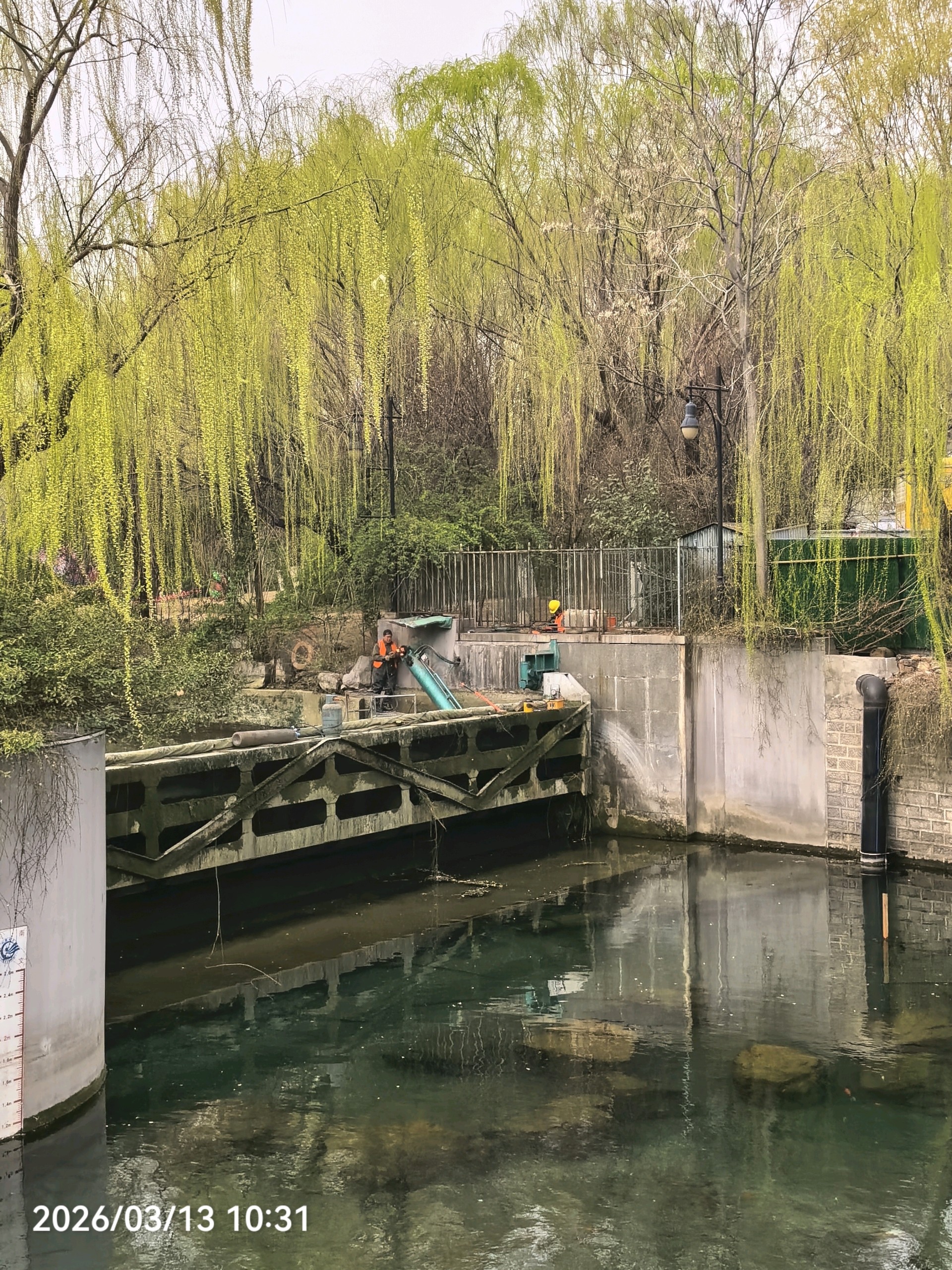护城河五龙潭段维修中∥为保障2026年度防汛工作的顺利开展,给广大市民游客提供更加安全优质的游览环境,现对济南护城河东西两线船闸、泄洪闸进行例行维护工作。护城河游船将于2026年3月12日至3月18日全线停航。