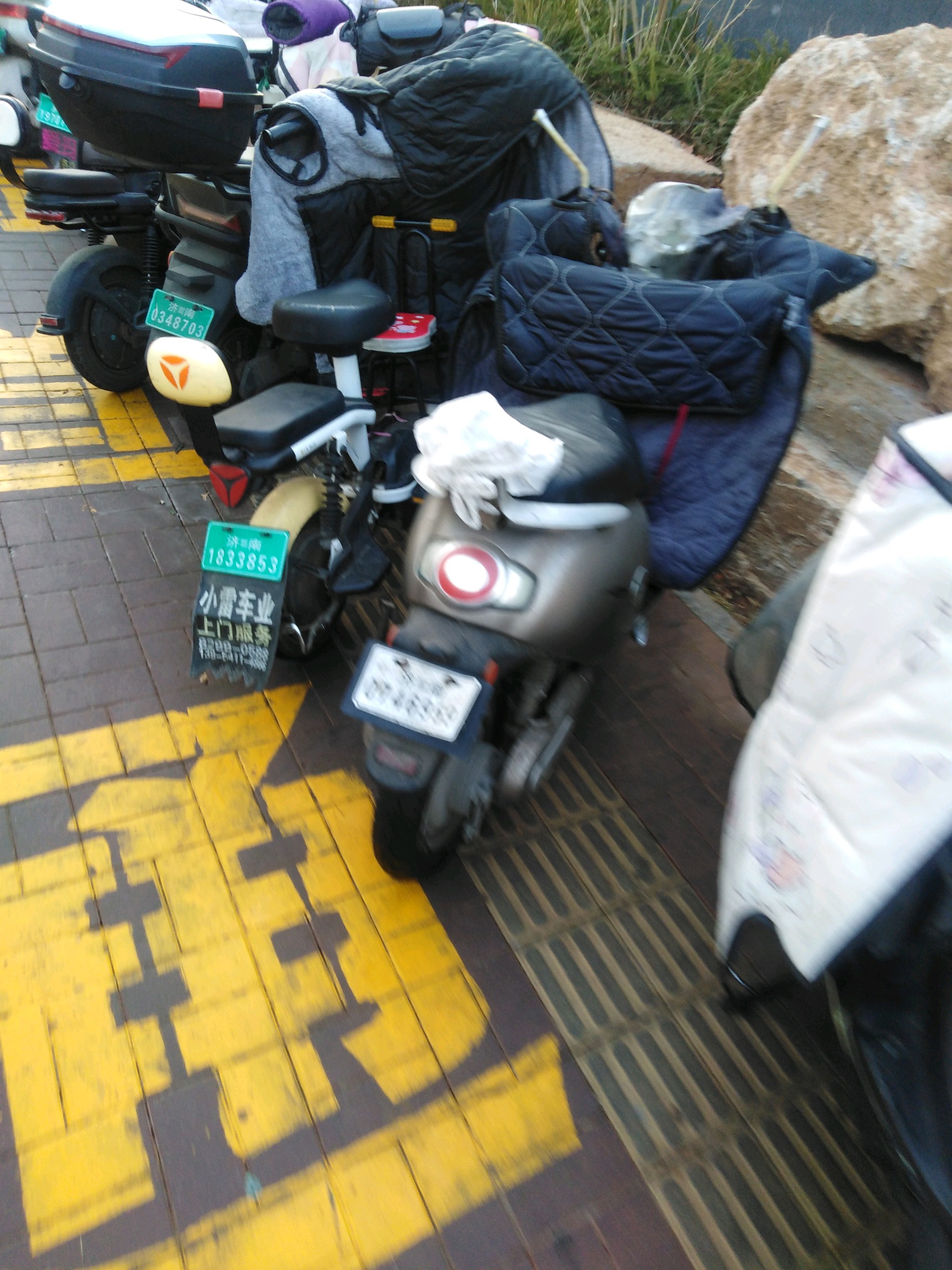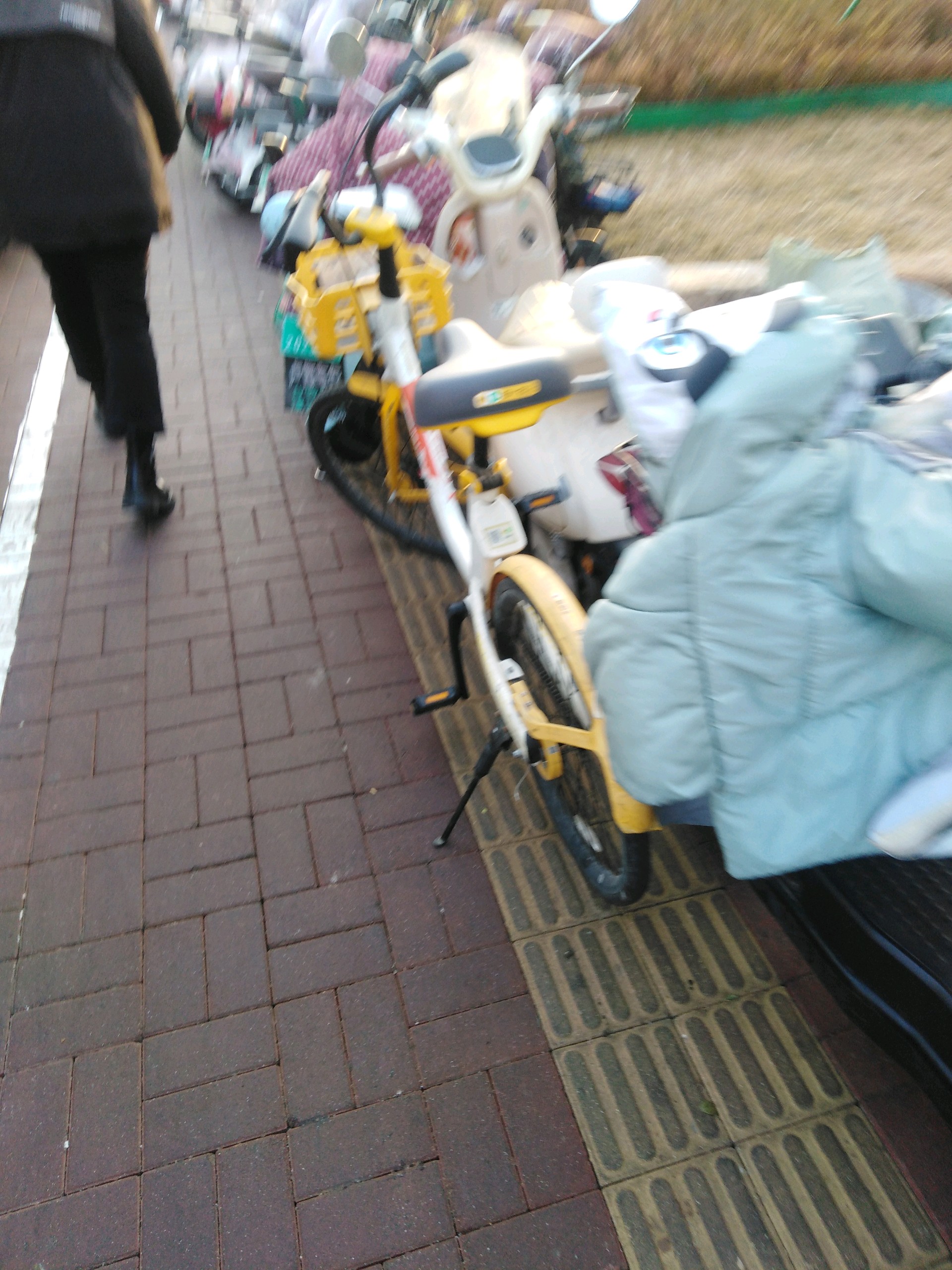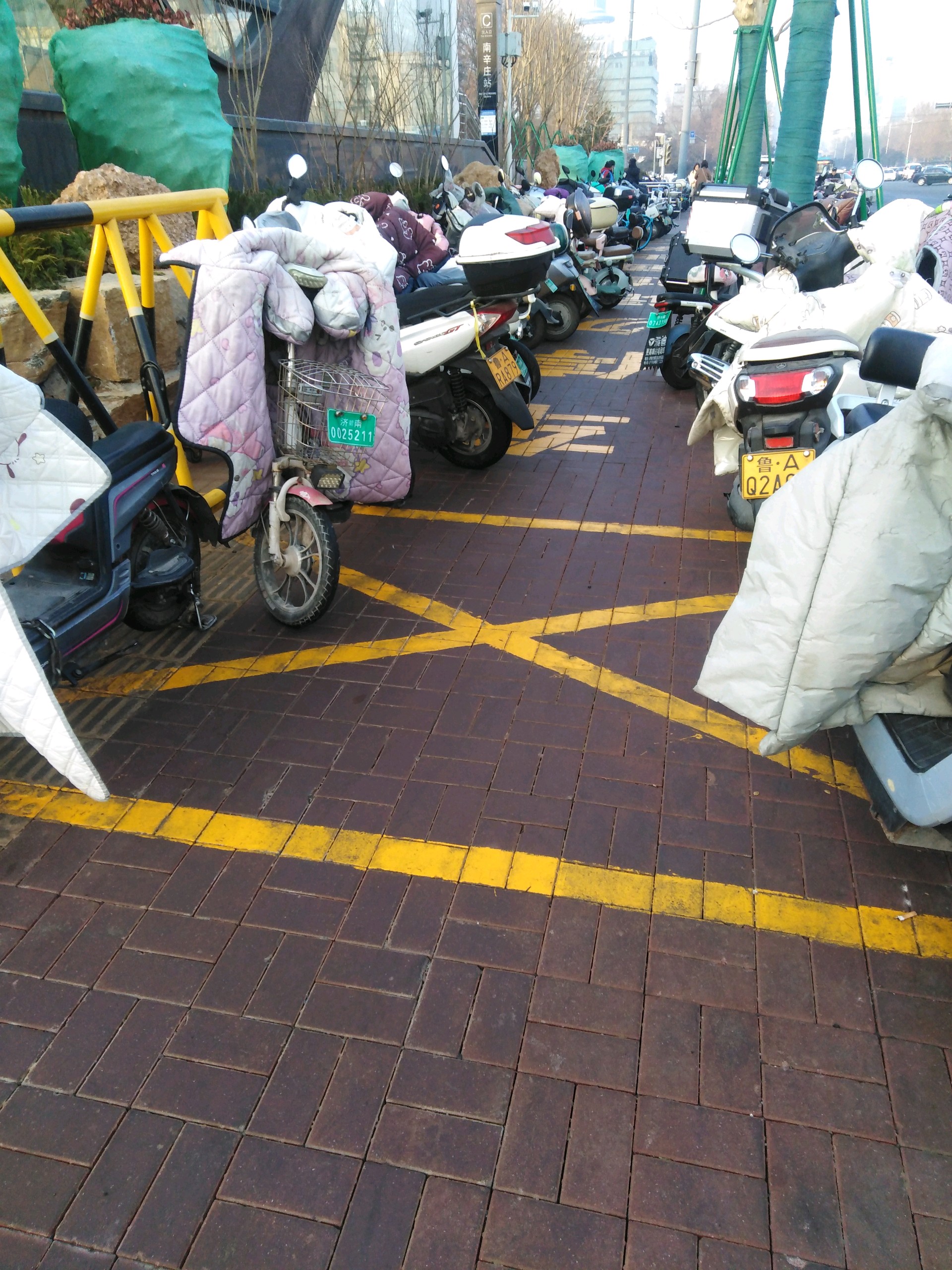 济南市槐荫区经十路地铁4号线南辛庄站,电动车自行车占用盲道乱停乱放。