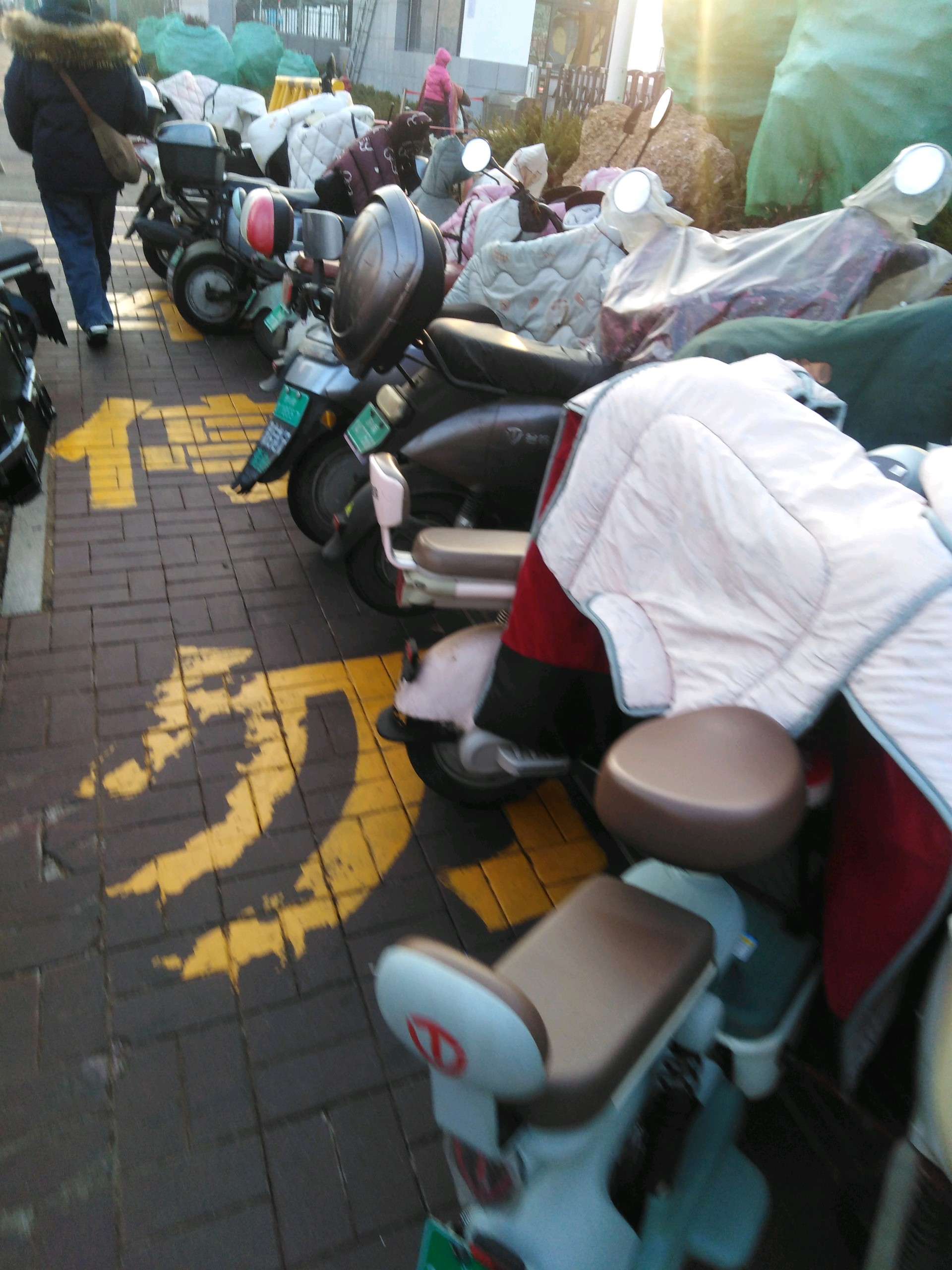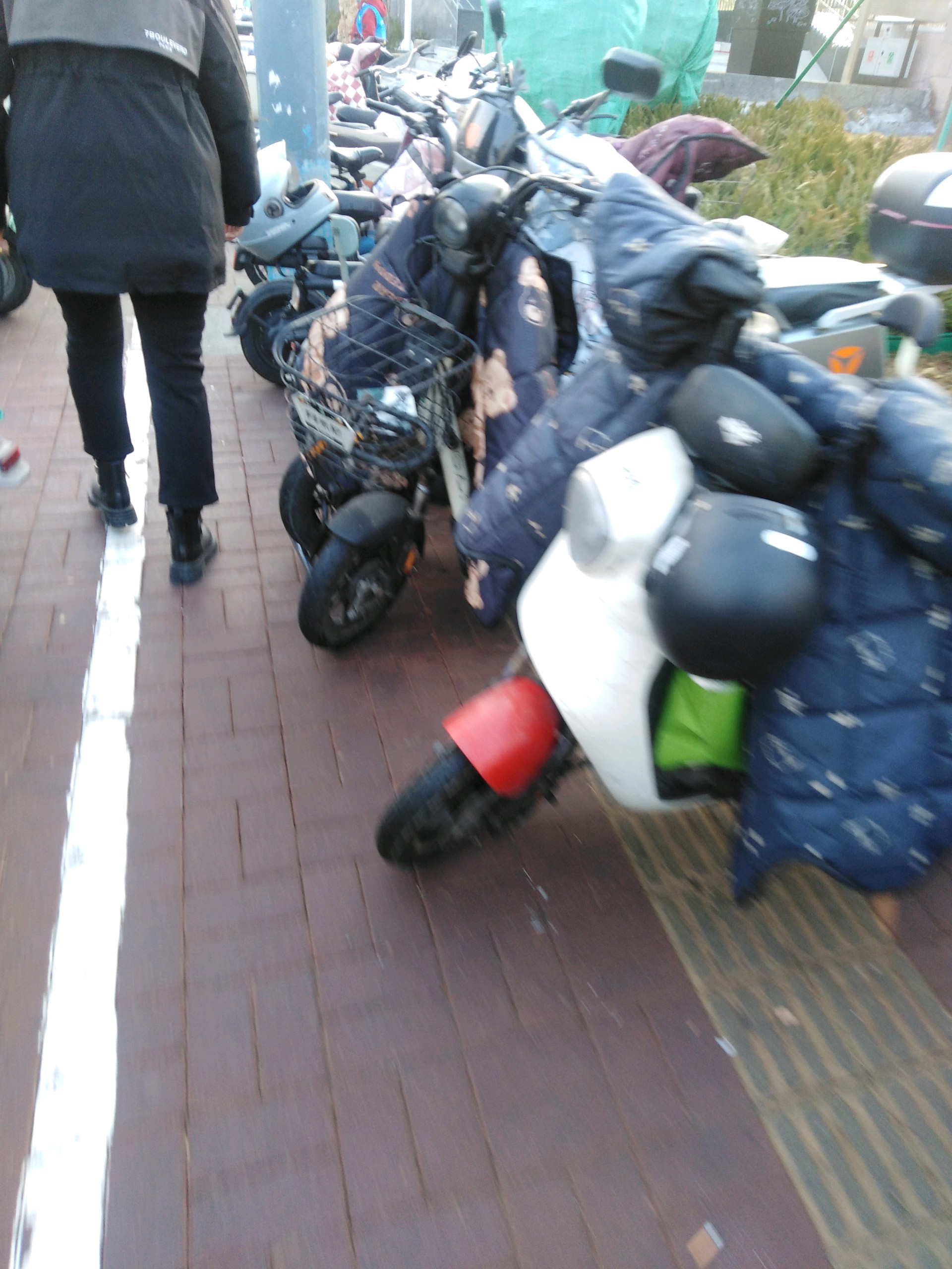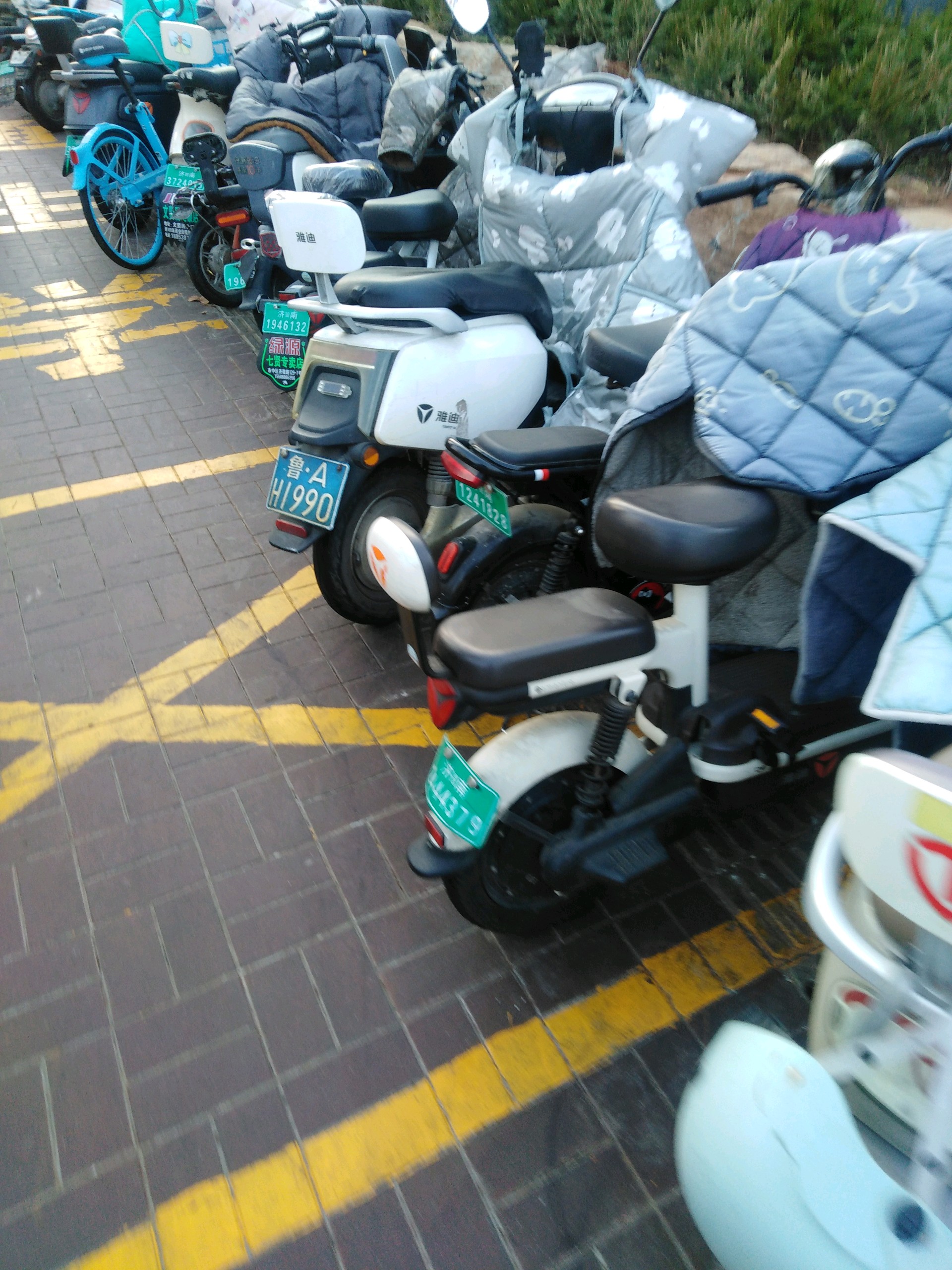 济南市槐荫区经十路地铁4号线南辛庄站,电动车自行车占用盲道乱停乱放。