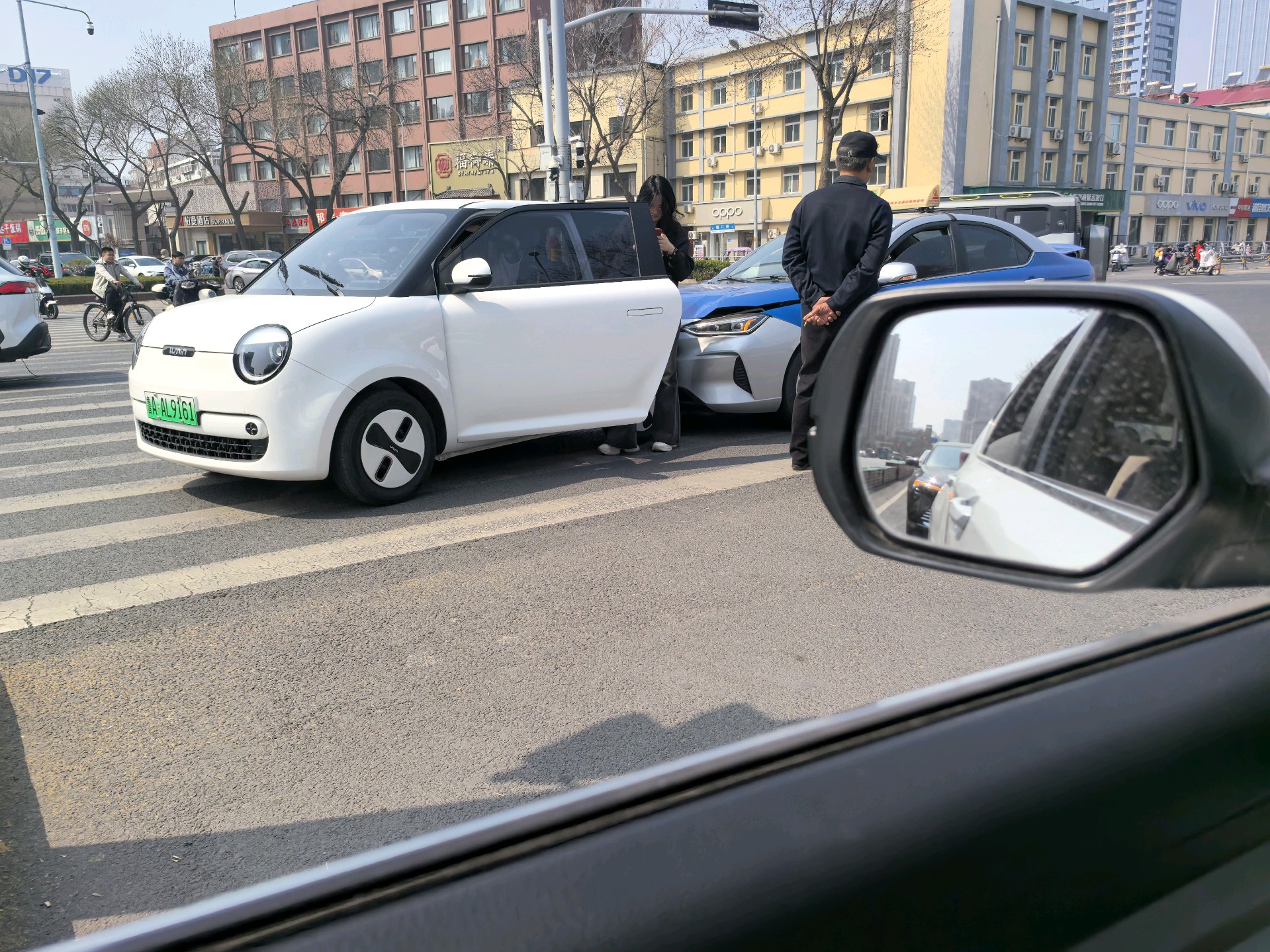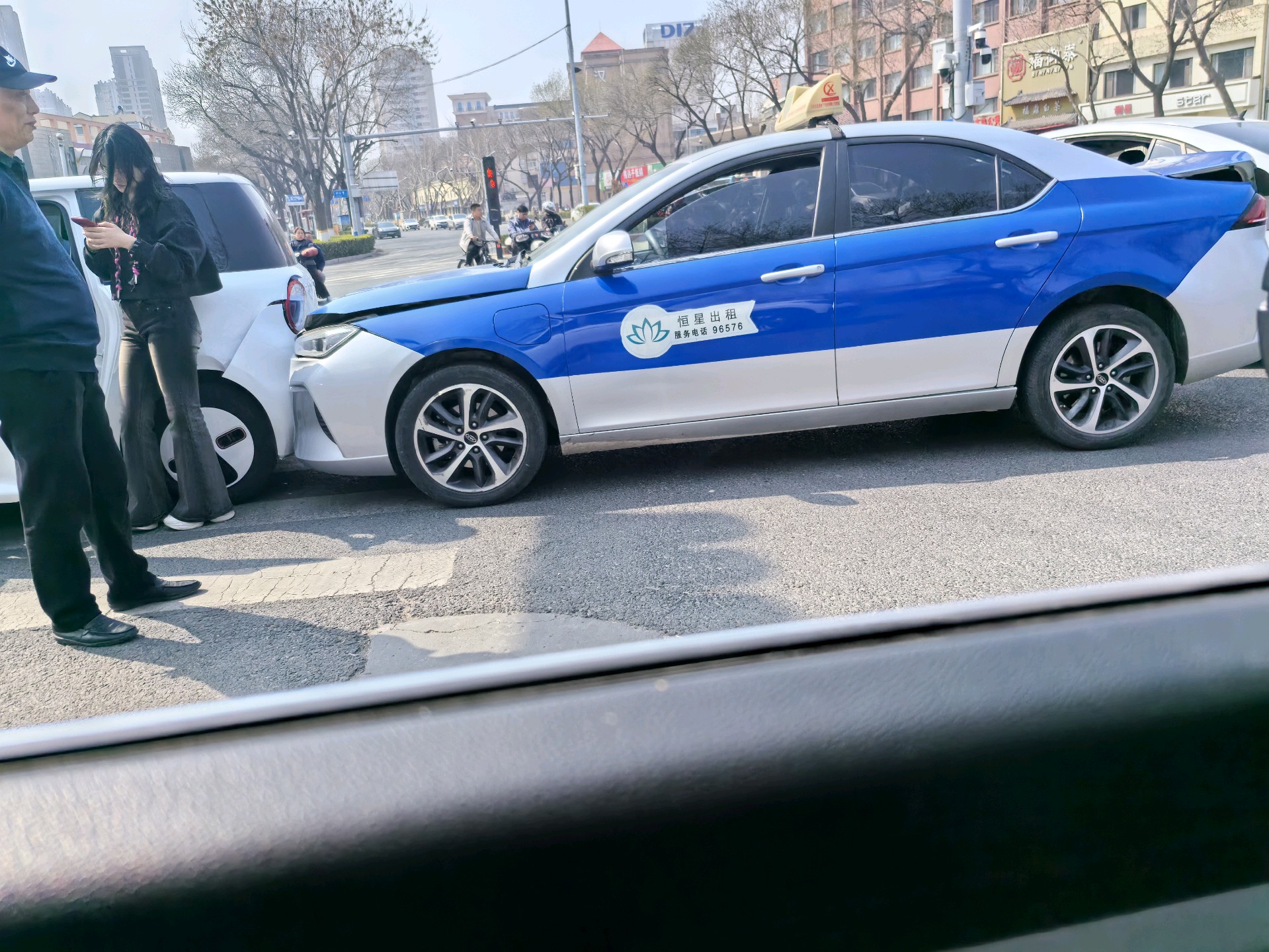 1点30分,济南市堤口路与济泺路交叉口,一白色私家车与一出租车相撞,出租车车头受损