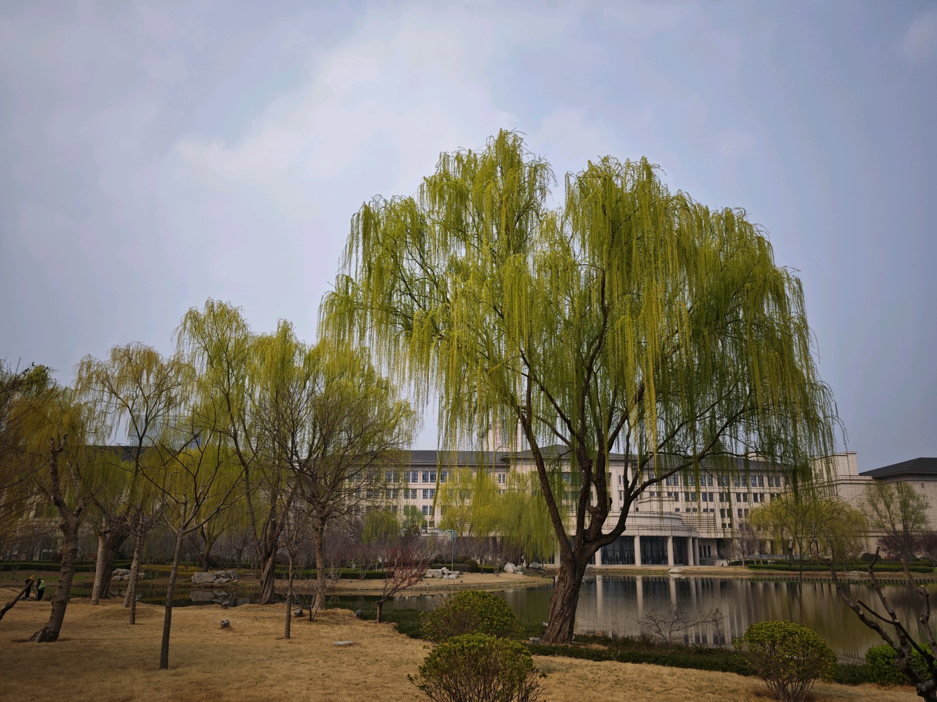 阳春三月,春风拂过,垂柳轻舞,仿佛在欢迎着春天的到来。