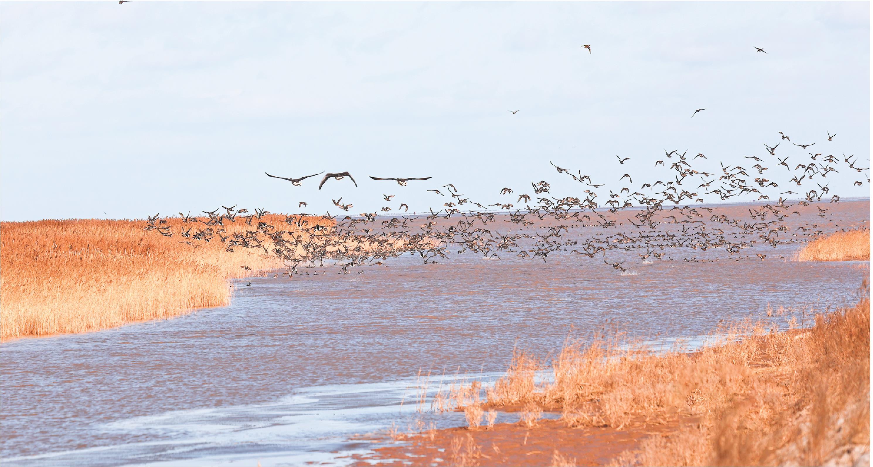 12月18日,鸟儿翔集黄河三角洲国家级自然保护区。(□记者张文婷通讯员钟福生报道)