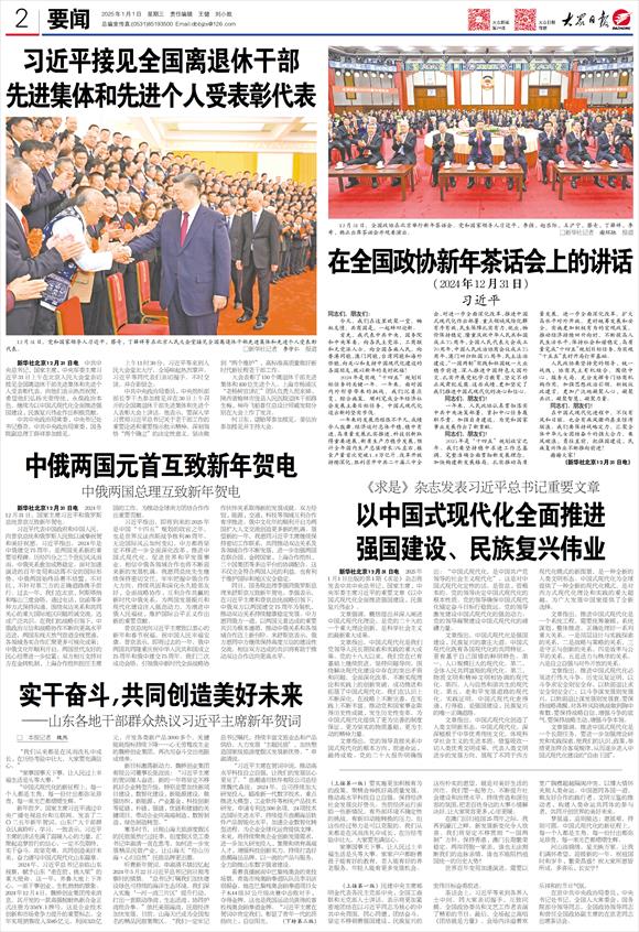 新年前夕,国家主席习近平通过中央广播电视总台和互联网,发表了二〇二五年新年贺词。山东广大干部群众认真聆听、学习,一致表示,习近平主席的讲话充满了温暖人心的力量,汇聚起追梦前行的信心,一定不负期待,实干奋斗,攻坚克难,共同创造美好未来,奋力谱写中国式现代化山东篇章。