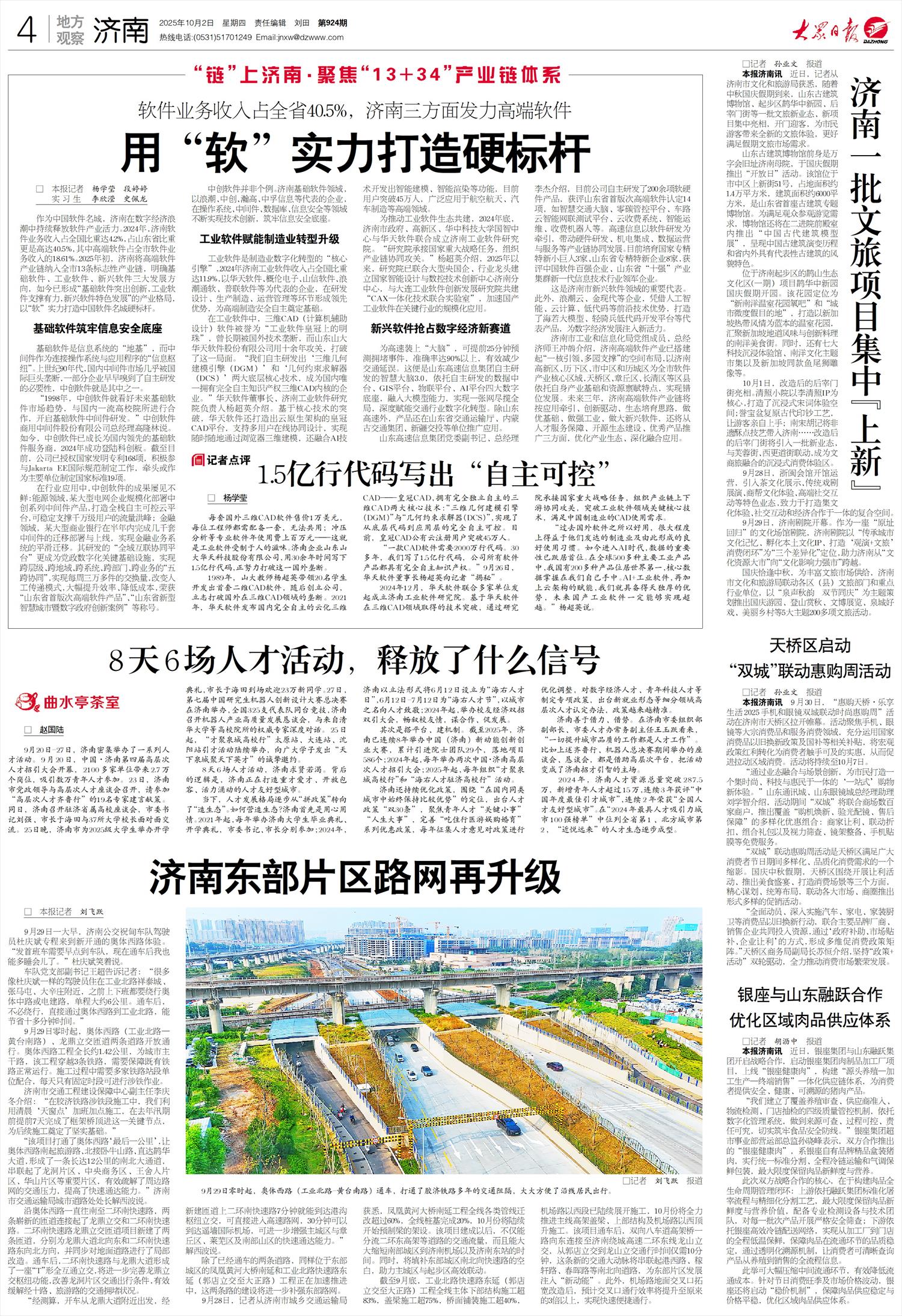 为推动工业软件生态共建,2024年底,济南市政府、高新区、华中科技大学国智中心与华天软件联合成立济南工业软件研究院。“研究院承接国家重大战略任务,组织产业链协同攻关。”杨超英介绍,2025年以来,研究院已联合大型央国企、行业龙头建立国家智能设计与数控技术创新中心济南分中心,与大连工业软件创新发展研究院共建“CAX一体化技术联合实验室”,加速国产工业软件在关键行业的规模化应用。