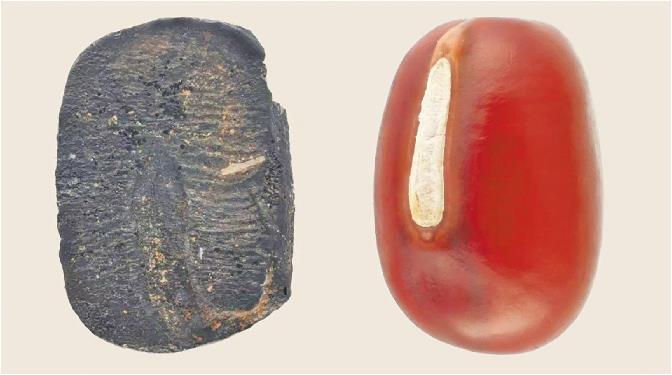 图②:考古出土炭化小豆与现代小豆样品。(□供图:山东大学)