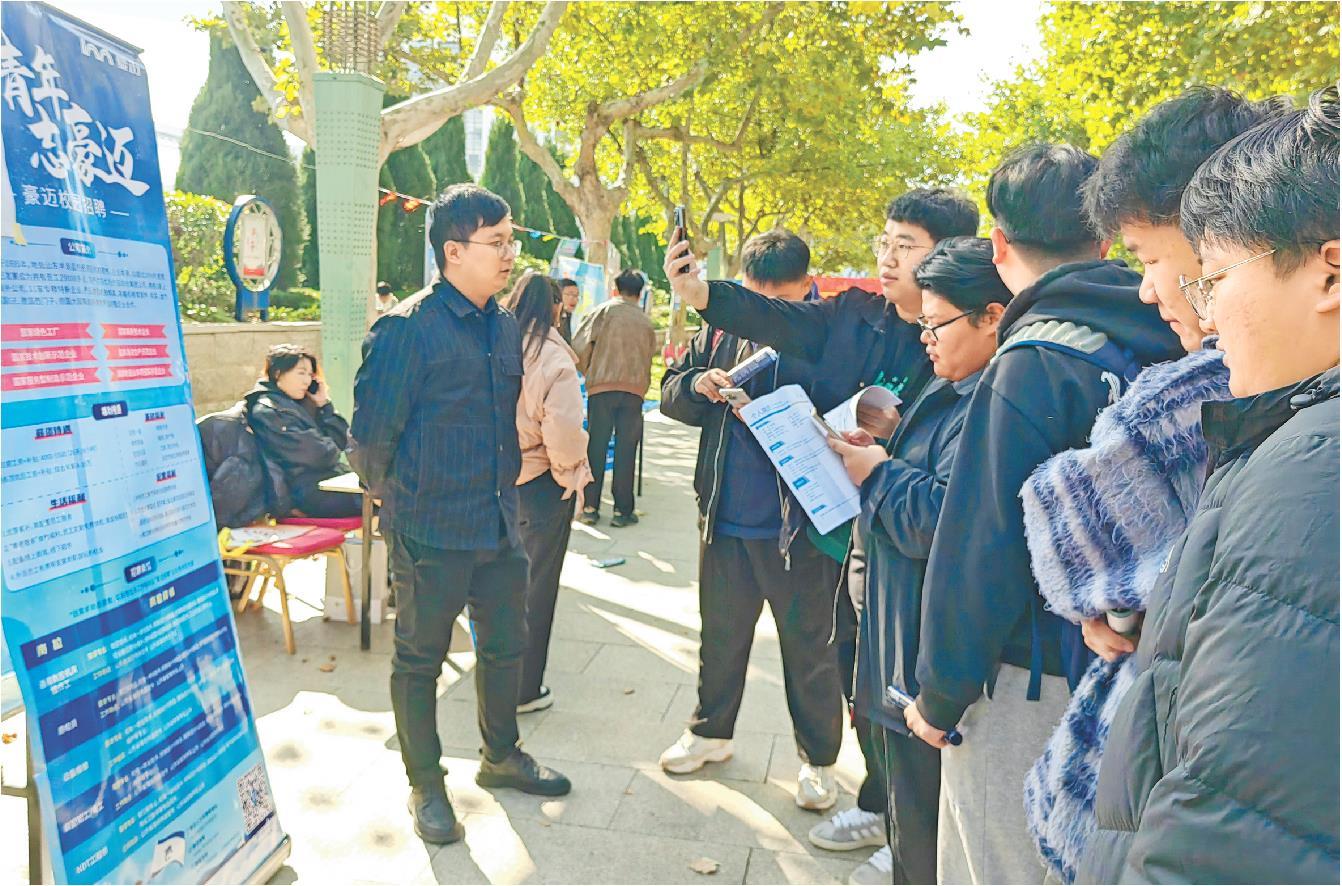 “一天工作几个小时?”“试用期多久?”在中国重汽集团济南商用车有限公司展位前,“国企上市公司”“实习工资6000元—8000元,五险一金、提供住宿、发放餐补”的介绍,吸引了大批学生驻足。“我家是济南的,能去国企,薪资也不错,太符合预期了。”一名学生兴奋地说。