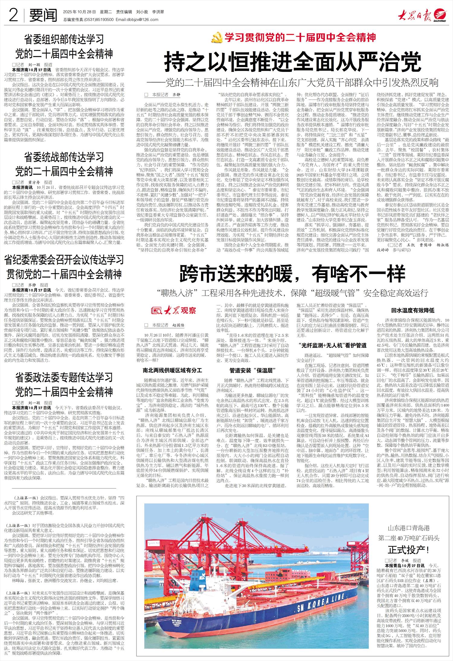 落实“抓学习、强调研、夯基础、提质效”工作机制,积极深化党组织标准化规范化建设;细化完善全面从严治党主体责任清单,推动党的建设与企业改革发展等同谋划、同部署、同推进……近年来,济南产业发展投资集团有限公司践行“围绕经济抓党建、抓好党建促发展”理念,积极探索“党建+”模式,以高质量党建引领企业高质量发展。“学习贯彻好全会精神,企业党组将扛牢抓实全面从严治党主体责任,继续推动党建工作与企业生产经营深度融合,推动全面从严治党与依法治企深度融合,写好‘十五五’时期企业发展新篇章。”济南产业发展投资集团有限公司党委副书记、董事、总经理孟新说。