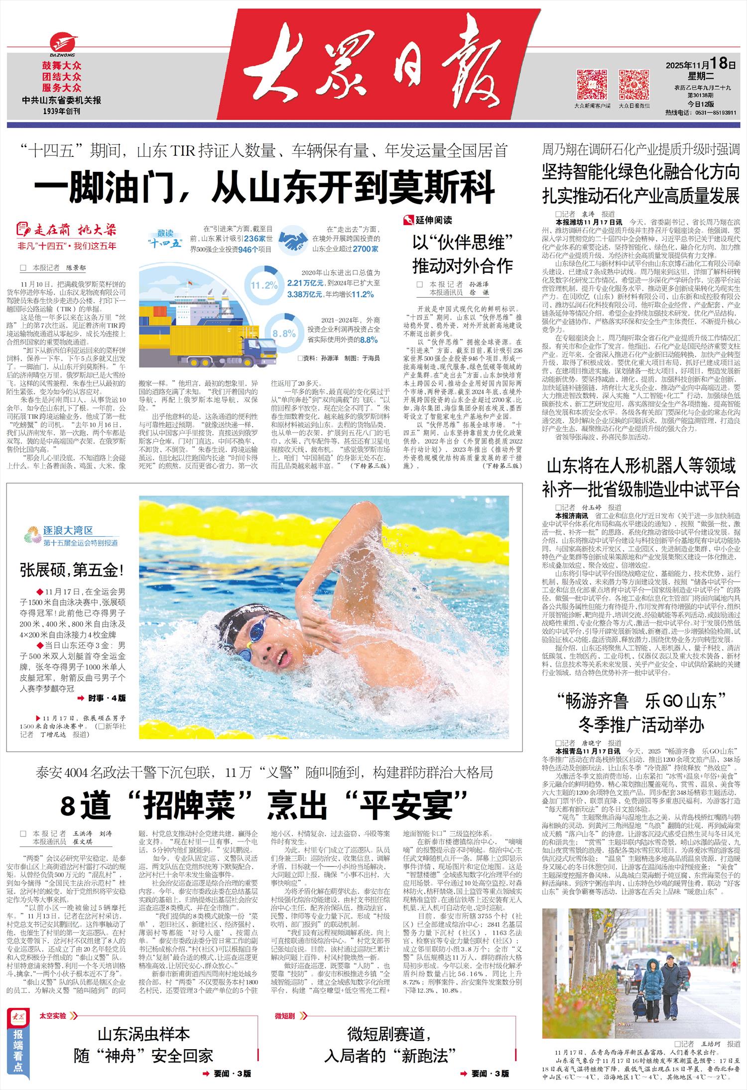 本报潍坊11月17日讯 今天,省委副书记、省长周乃翔在滨州、潍坊调研石化产业提质升级并主持召开专题座谈会。他强调,要深入学习贯彻党的二十届四中全会精神、习近平总书记关于建设现代化产业体系的重要论述,坚持智能化、绿色化、融合化方向,加力推动石化产业提质升级,为经济社会高质量发展提供有力支撑。