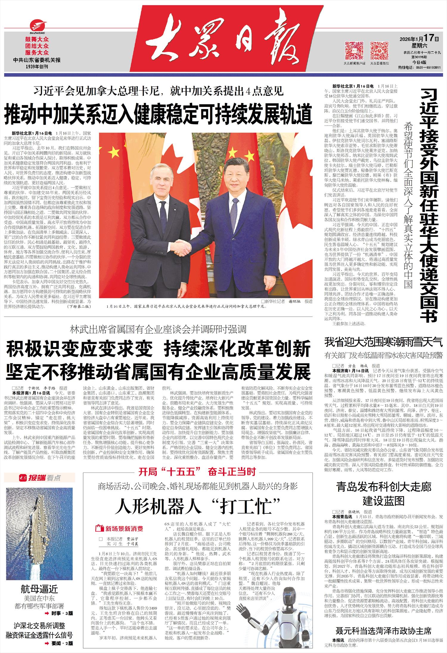 气温方面,16日起我省气温持续下降,过程降温幅度10~12℃,局部地区超过14℃。21日至25日仍有低于-12℃的低温天气。降雪降温的同时伴有大风,18日至19日将出现偏北大风,渤海、渤海海峡、黄海北部和中部7~8级阵风9~10级。