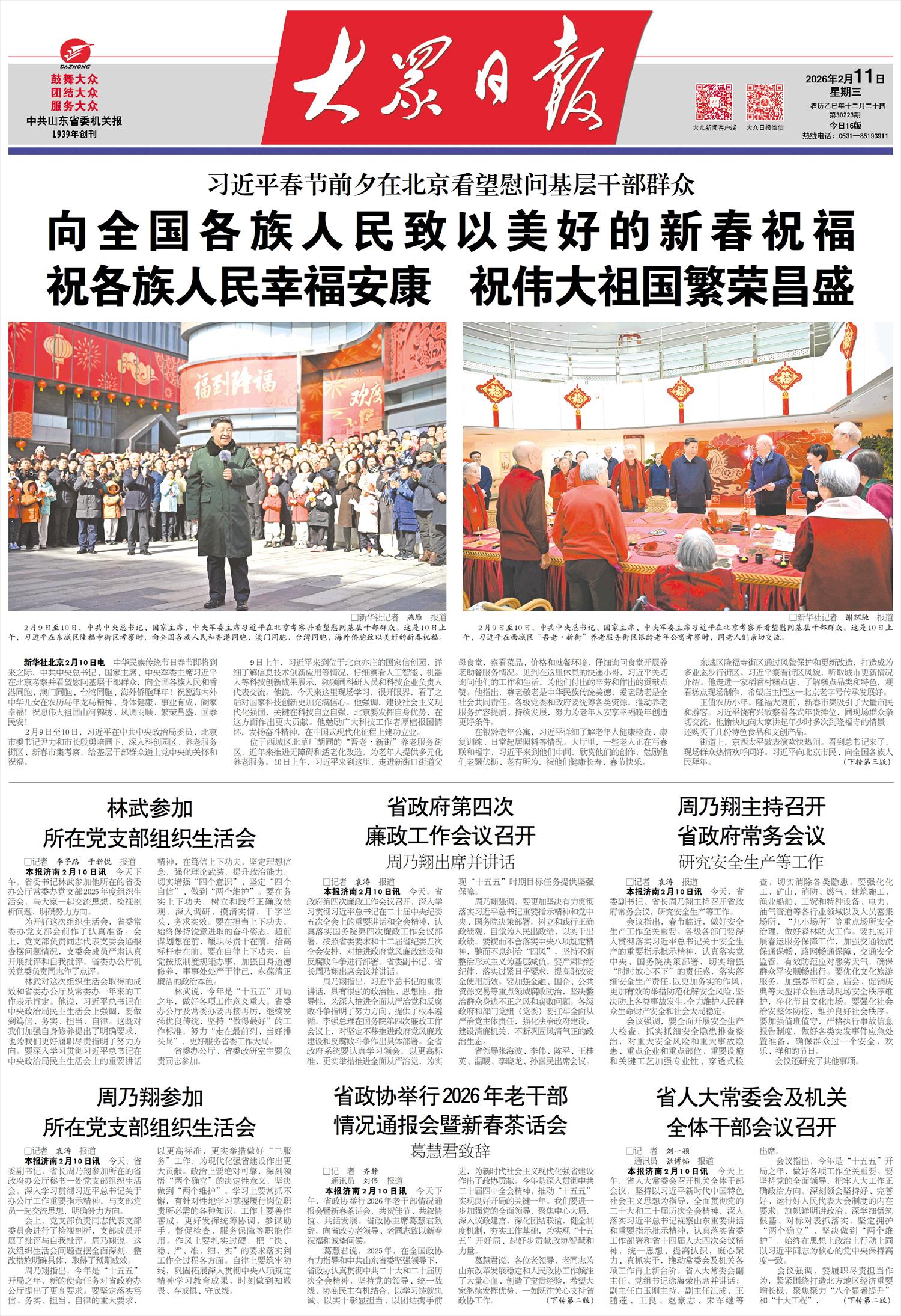 本报济南2月10日讯 今天,省委副书记、省长周乃翔主持召开省政府常务会议,研究安全生产等工作。
