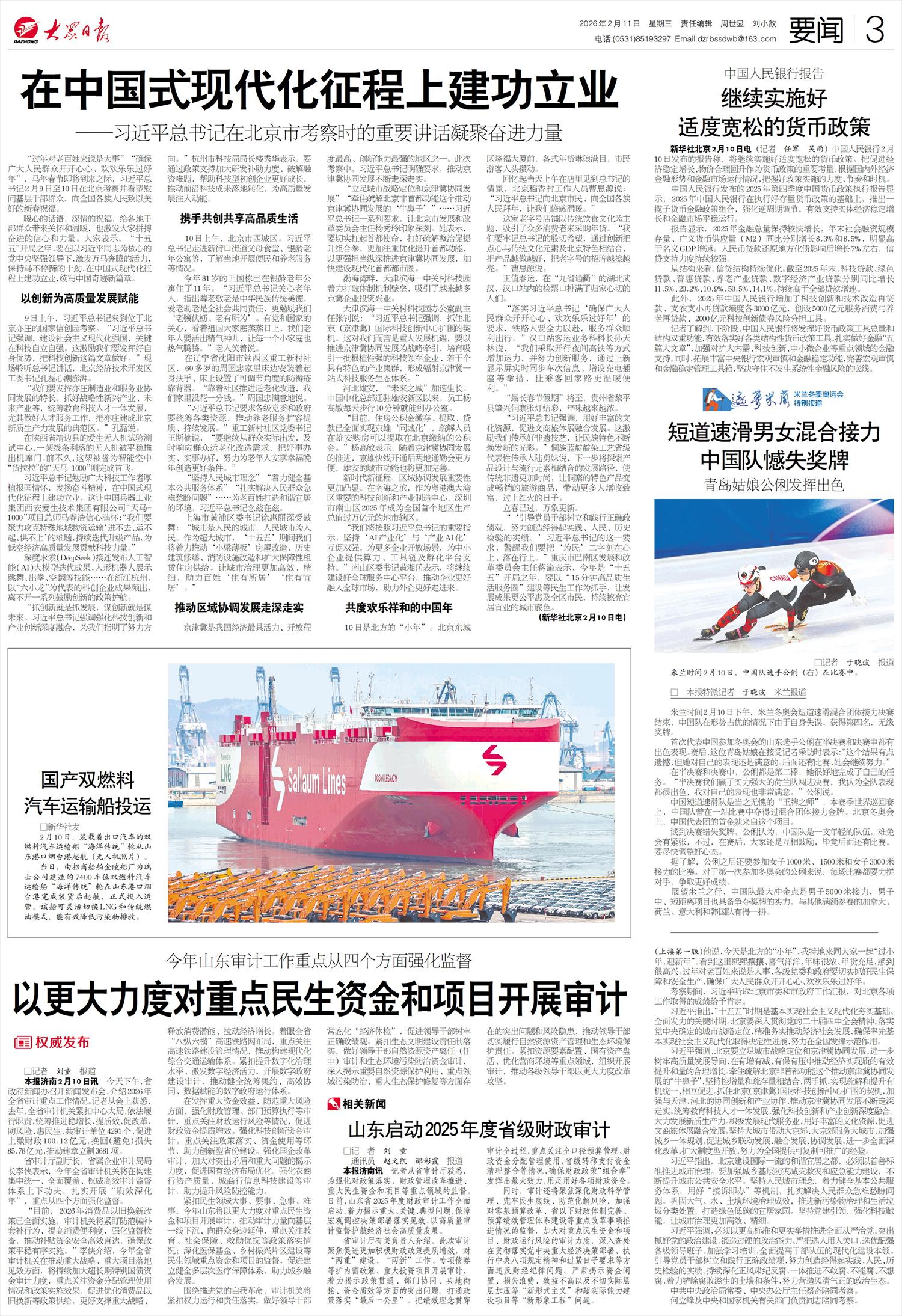 紧扣民生领域大事、要事、急事、难事,今年山东将以更大力度对重点民生资金和项目开展审计,推动审计力量向基层一线下沉、向群众身边延伸,重点关注教育、社会保障、救助优抚等政策落实情况;深化医保基金、乡村振兴片区建设等民生领域重点资金和项目的监督,促进建立健全多层次医疗保障体系,助力城乡融合发展。