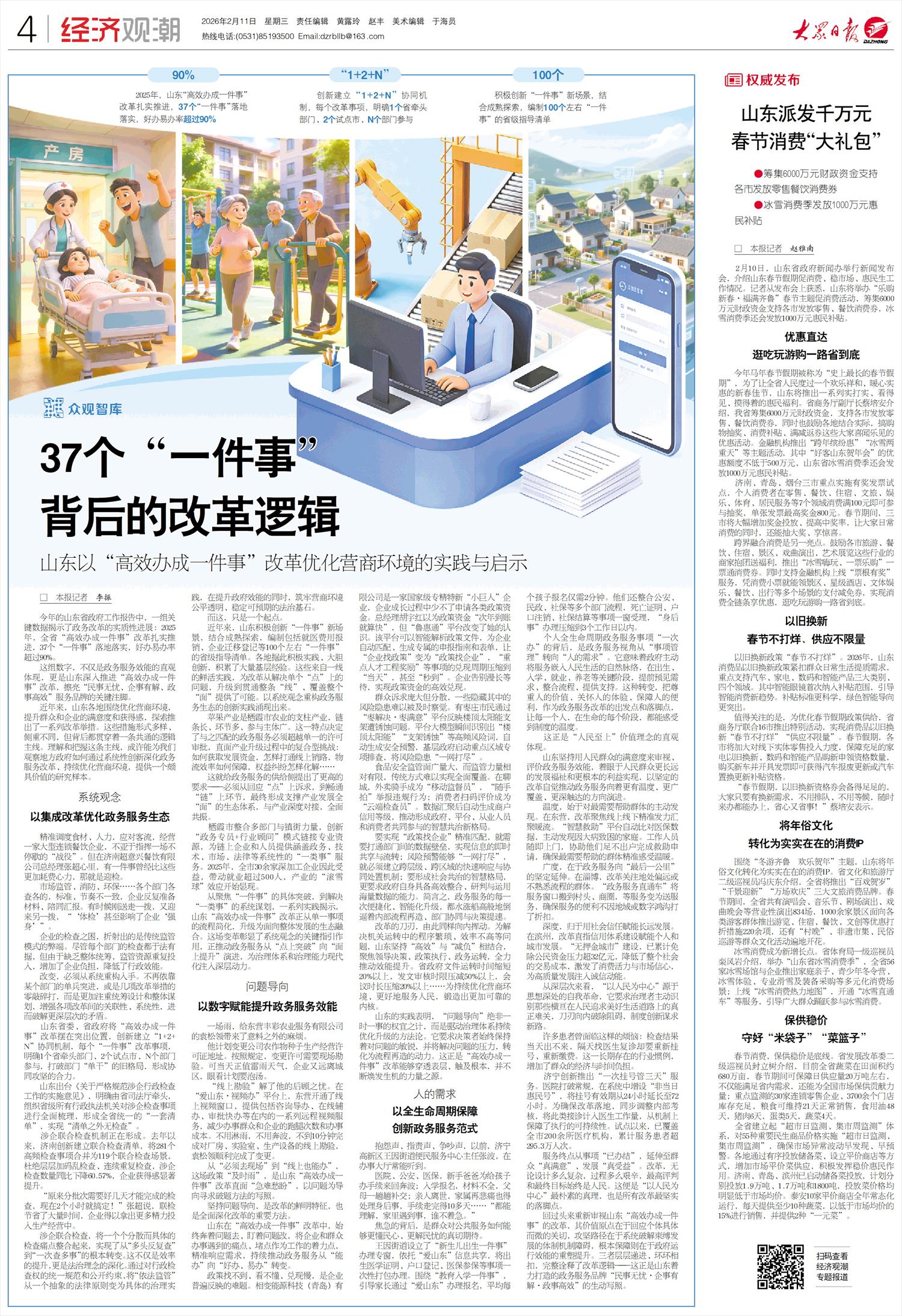这组数字,不仅是政务服务效能的直观体现,更是山东深入推进“高效办成一件事”改革,擦亮“民事无忧、企事有解、政事高效”服务品牌的关键注脚。