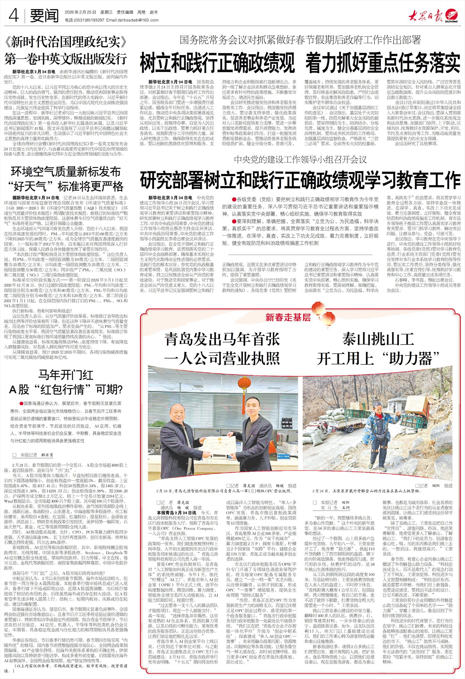 本报青岛2月24日讯 今天,青岛元渔智能科技有限公司在青岛市市北区行政审批服务大厅,领取了青岛市马年首张OPC(One Person Company,一人公司)营业执照。