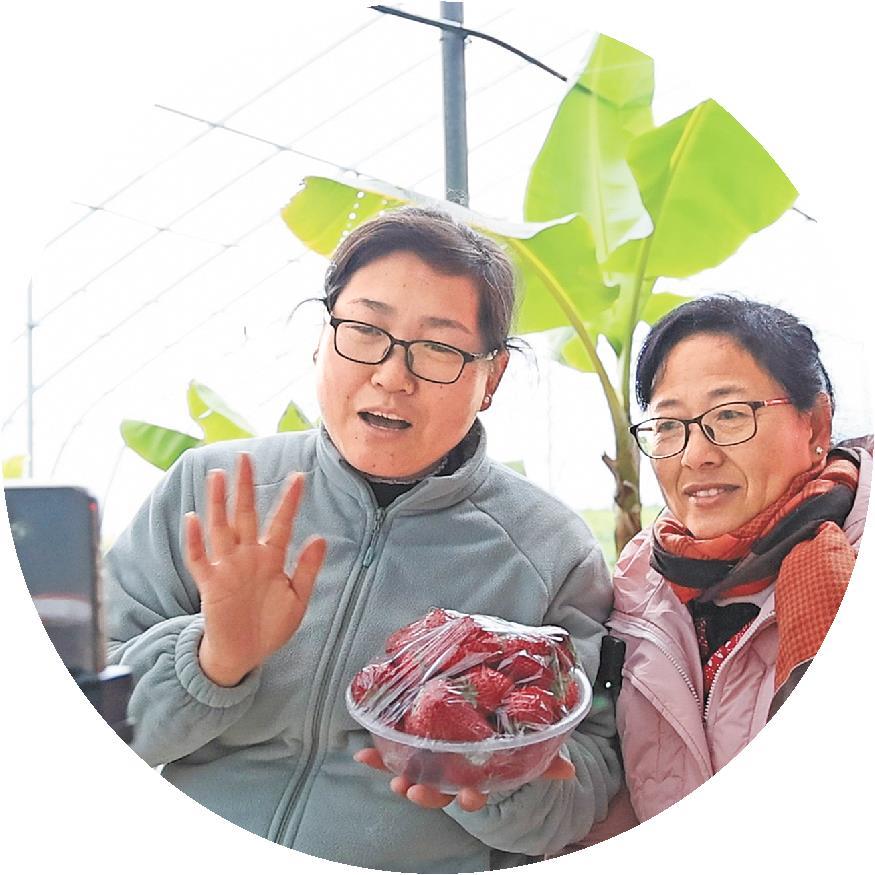3月6日,东营市黄三角农高区丁庄乡村振兴齐鲁样板省级示范区王署埠村的草莓大棚,农民正在直播卖草莓。(□记者李明孙娜娜报道)