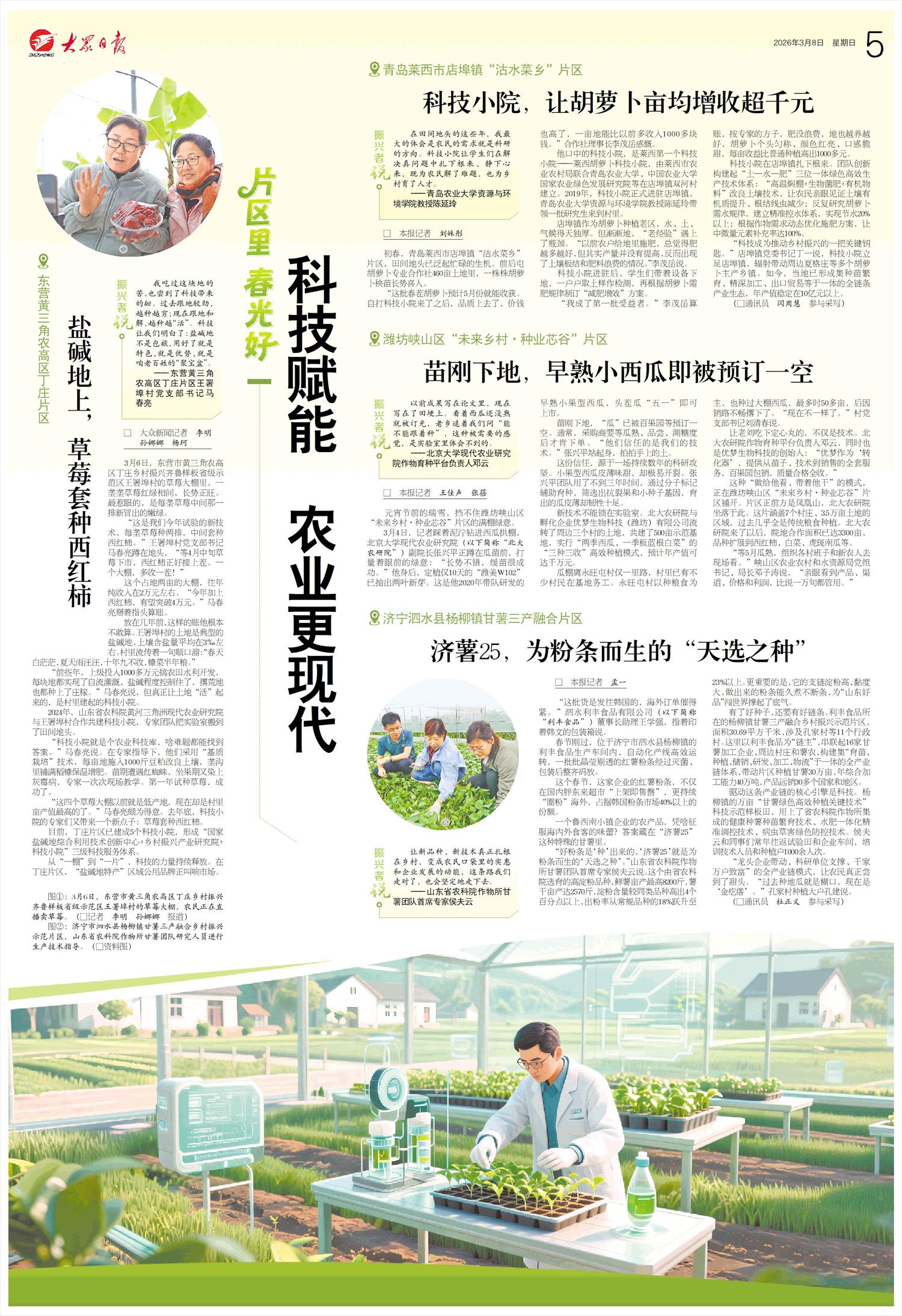 目前,丁庄片区已建成5个科技小院,形成“国家盐碱地综合利用技术创新中心+乡村振兴产业研究院+科技小院”三级科技服务体系。