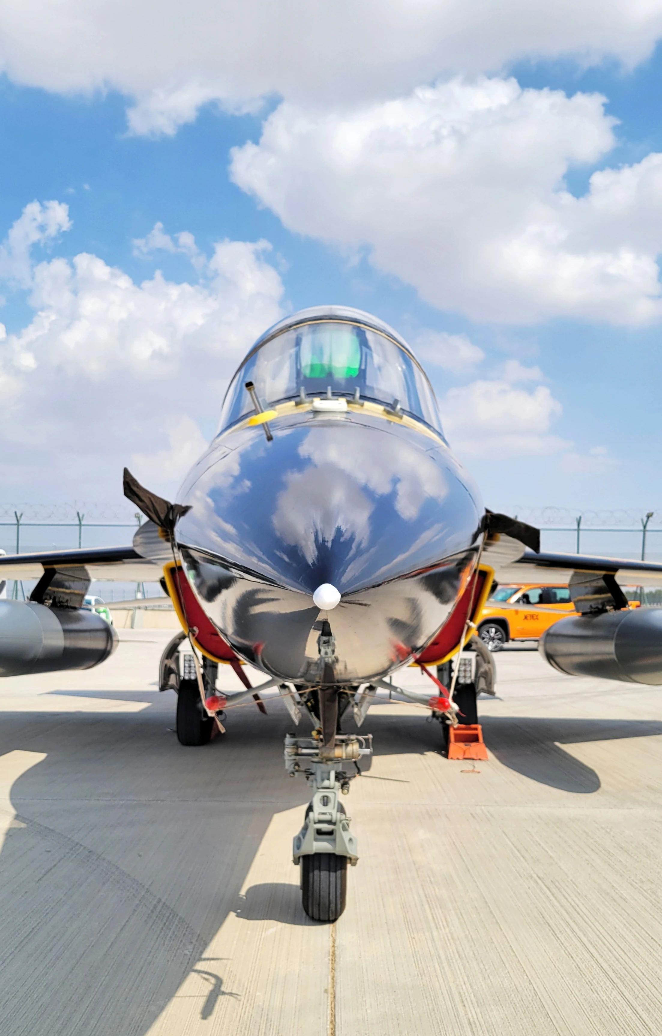 第18届迪拜航展即将开幕,11月6日,全新涂装的两架国产L-15A抵达阿联酋迪拜,这是与阿联酋成功签约后该机型首次公开亮相。