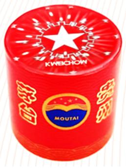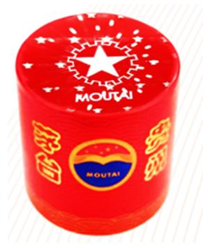 手持酒瓶观察新防伪帽套帽身整体呈朱红色,底边为祥云图案,顶部为“五星齿轮”图案。俯视帽顶,可见“五星齿轮”图案立体悬浮于帽顶。晃动酒瓶,可见“五星齿轮”变大变小、跳跃式缩放,发散七彩光芒,“MOUTAI”和“KWEICHOW”两组字母交替出现。
