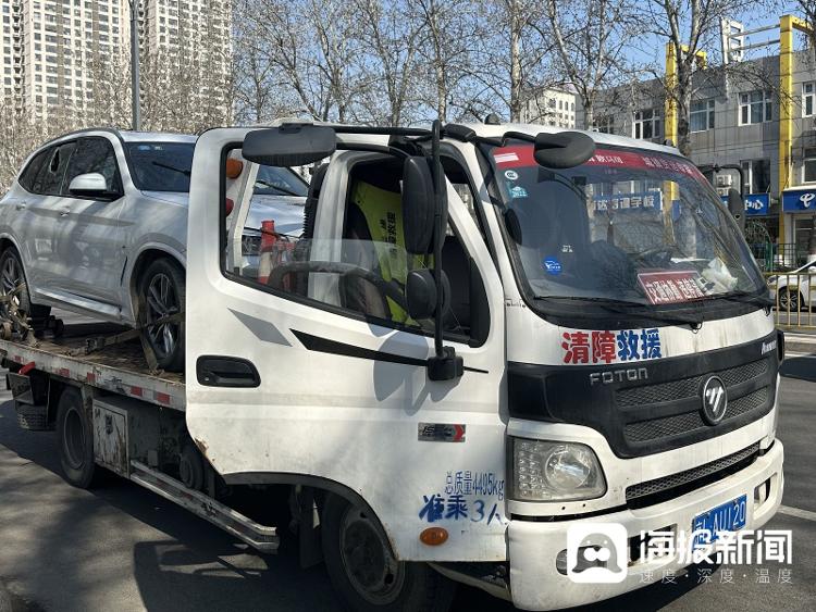 记者在靠近事故现场的路口处看到,陆续有汽车被清障救援车辆拉出
