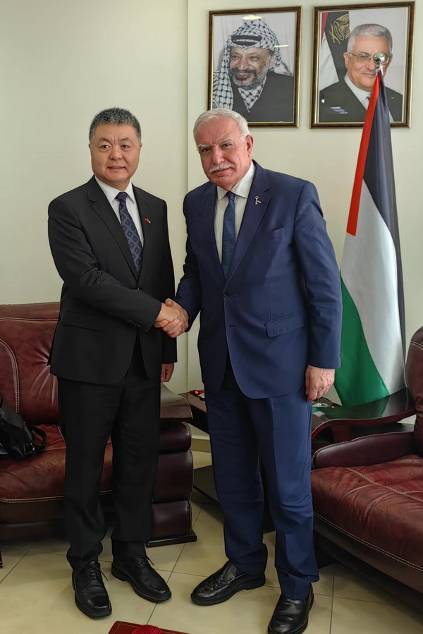 2024年3月13日,外交部大使王克俭访问巴勒斯坦,分别会见巴勒斯坦外长马立基、总统外交事务顾问麦吉迪,就中巴关系、加沙冲突等交换了意见。
