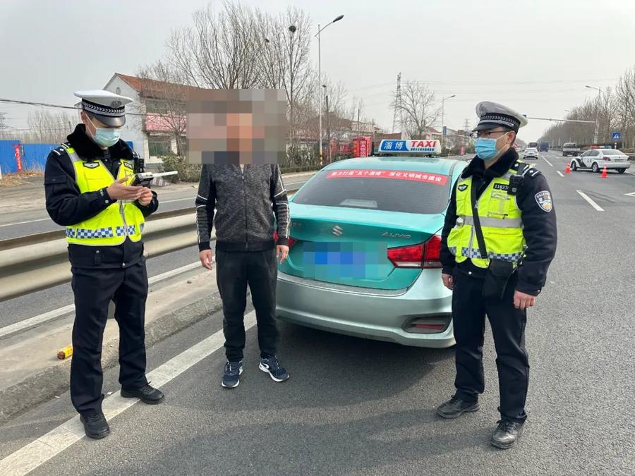 3月10日,淄博市公安局交通警察支队高青大队高城中队在克黄线查纠酒醉驾等交通违法行为,12时30分左右,民警示意一辆由北向南行驶的鲁CTC***号出租客车停车接受检查。