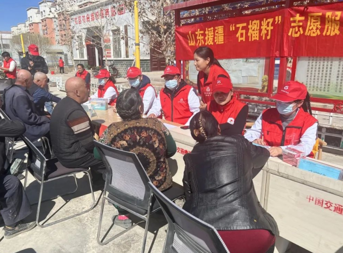 近日,济宁援疆指挥部到英吉沙镇创业社区开展免费送医、送药、植树等鲁疆“石榴籽”志愿者服务活动。