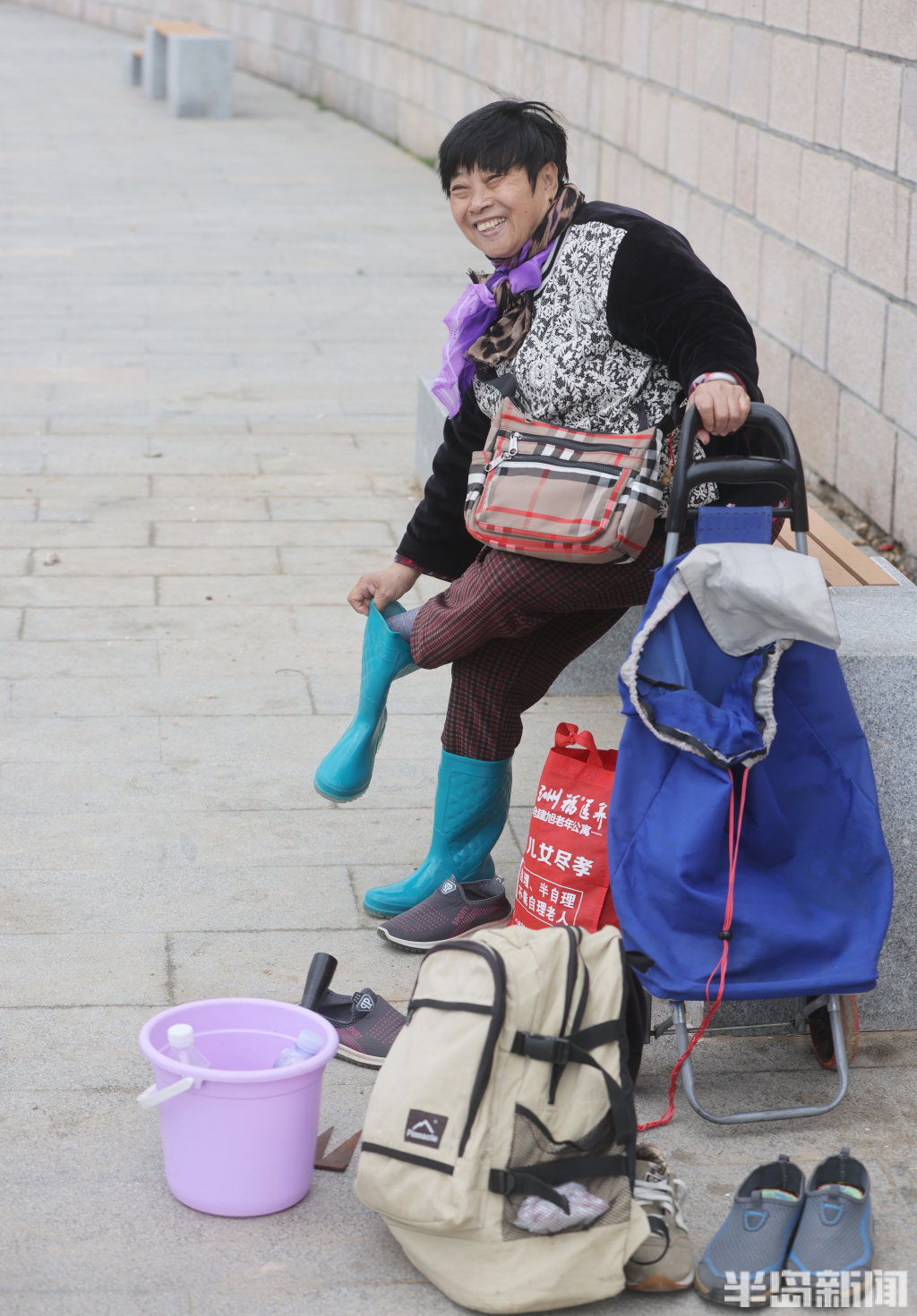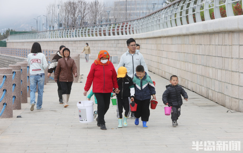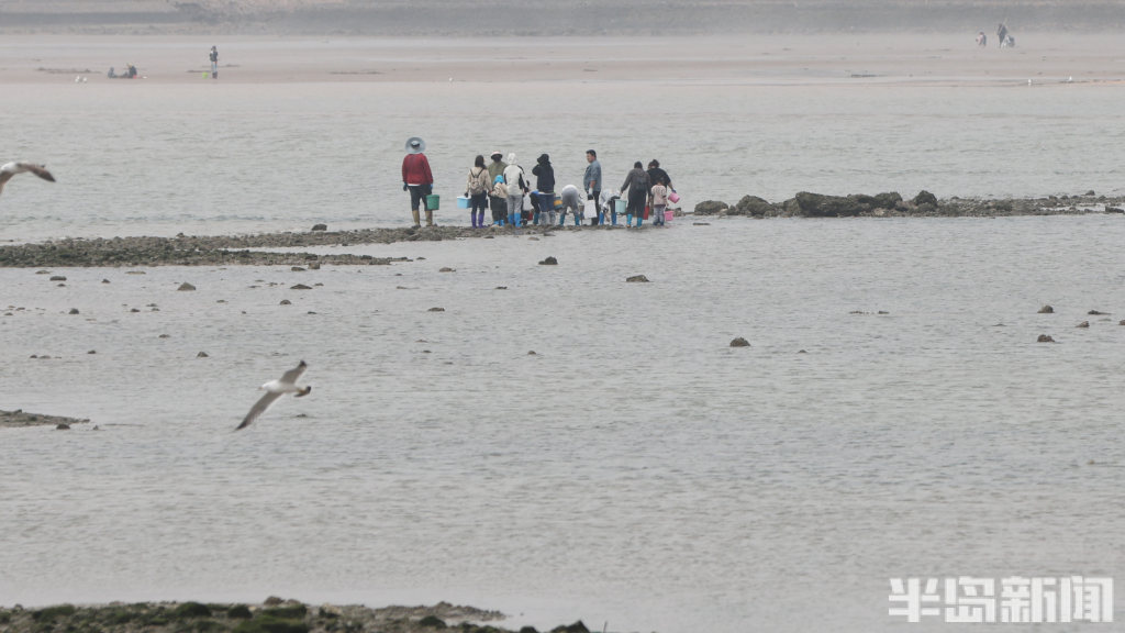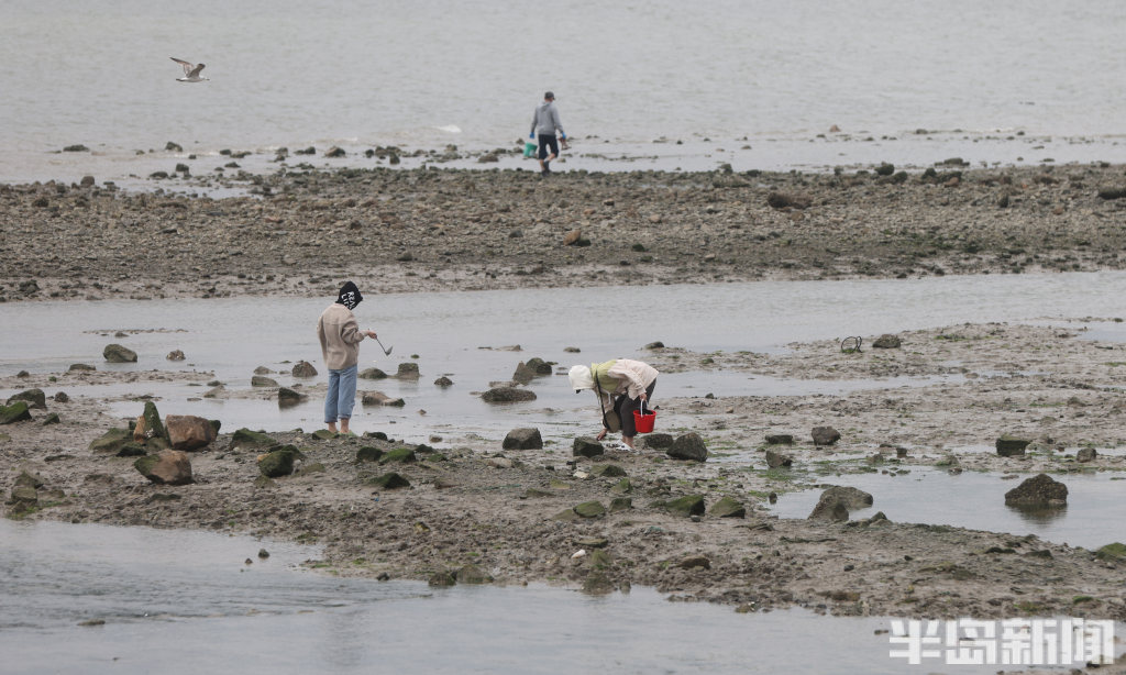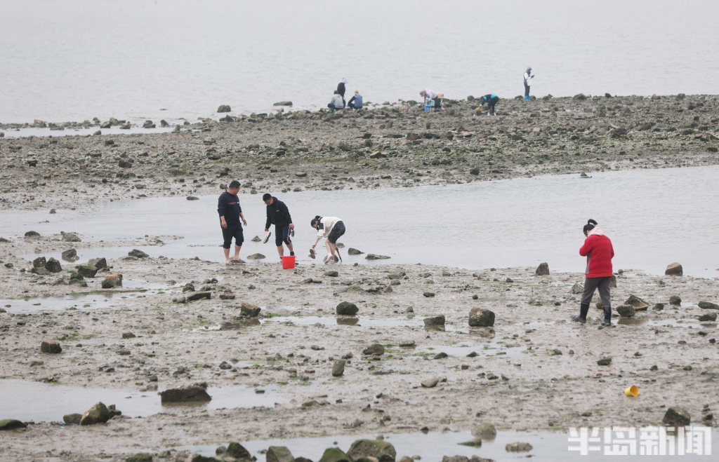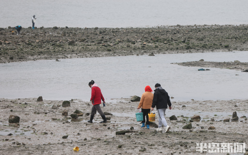 半岛全媒体记者 何毅4月13日,青岛即墨区鳌山卫海边,退大潮时,不少人到这里赶海。有附近的居民,也有专程从市区乘车前来的老人。大家赶海的装备很齐全,穿着防水靴,拿着大桶、小桶,手拎着铲子在退潮的沙滩上“挖呀挖”,收获的海鲜有蛏子、蛤蜊等。