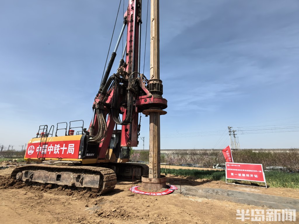 中铁十局潍宿高铁至青岛连接线ZQSG-1标项目部负责人宋呈超介绍,该项目部承担了新建正线长度32.56千米,引入洋河口站右线绕行5.24千米,引入青岛西站右线绕行6.12千米,以及改建洋河口站和青岛西站。此次开钻的首根桩基位于青岛市西海岸新区王台街道内,沙河中村特大桥8号墩-4号桩基,桩径1米,桩长16.5米,采用旋挖钻施工工艺。开钻过程中,项目部严格按照安全施工标准推进,技术人员全程监督,全方位做好现场安全质量管控,确保整个项目建设起好步、开好局。