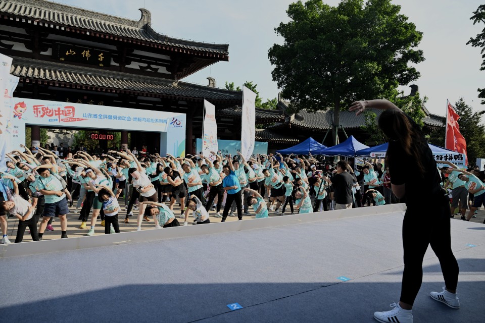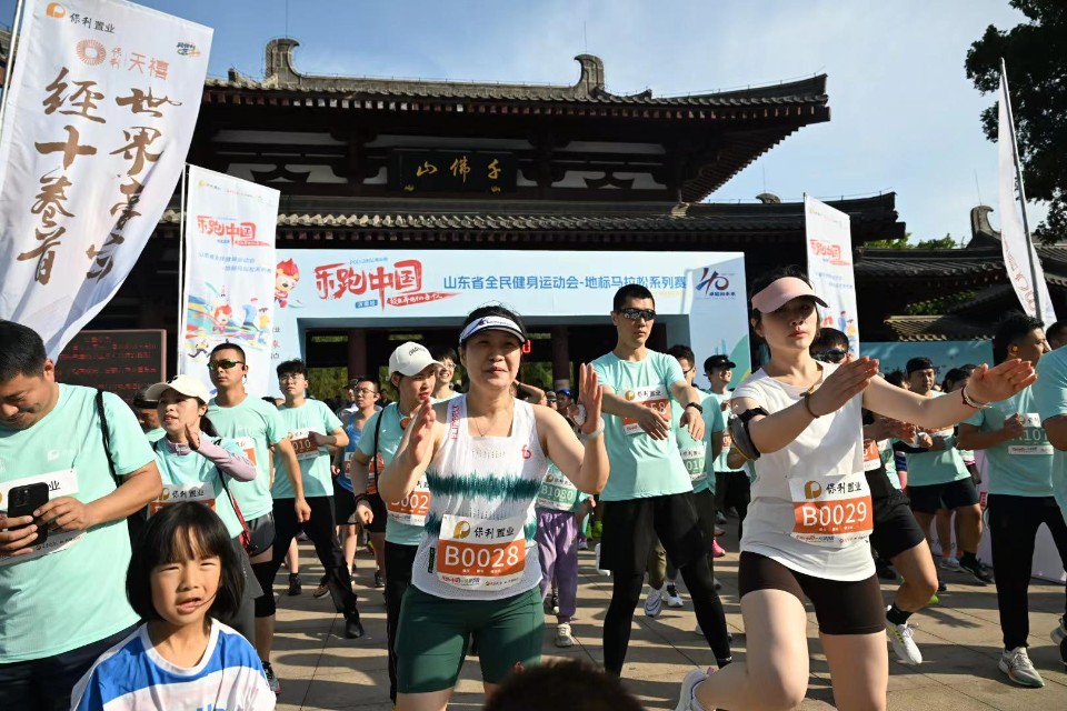 图集丨地标马拉松系列赛千佛山站开跑,跑友赛前热身热情满满