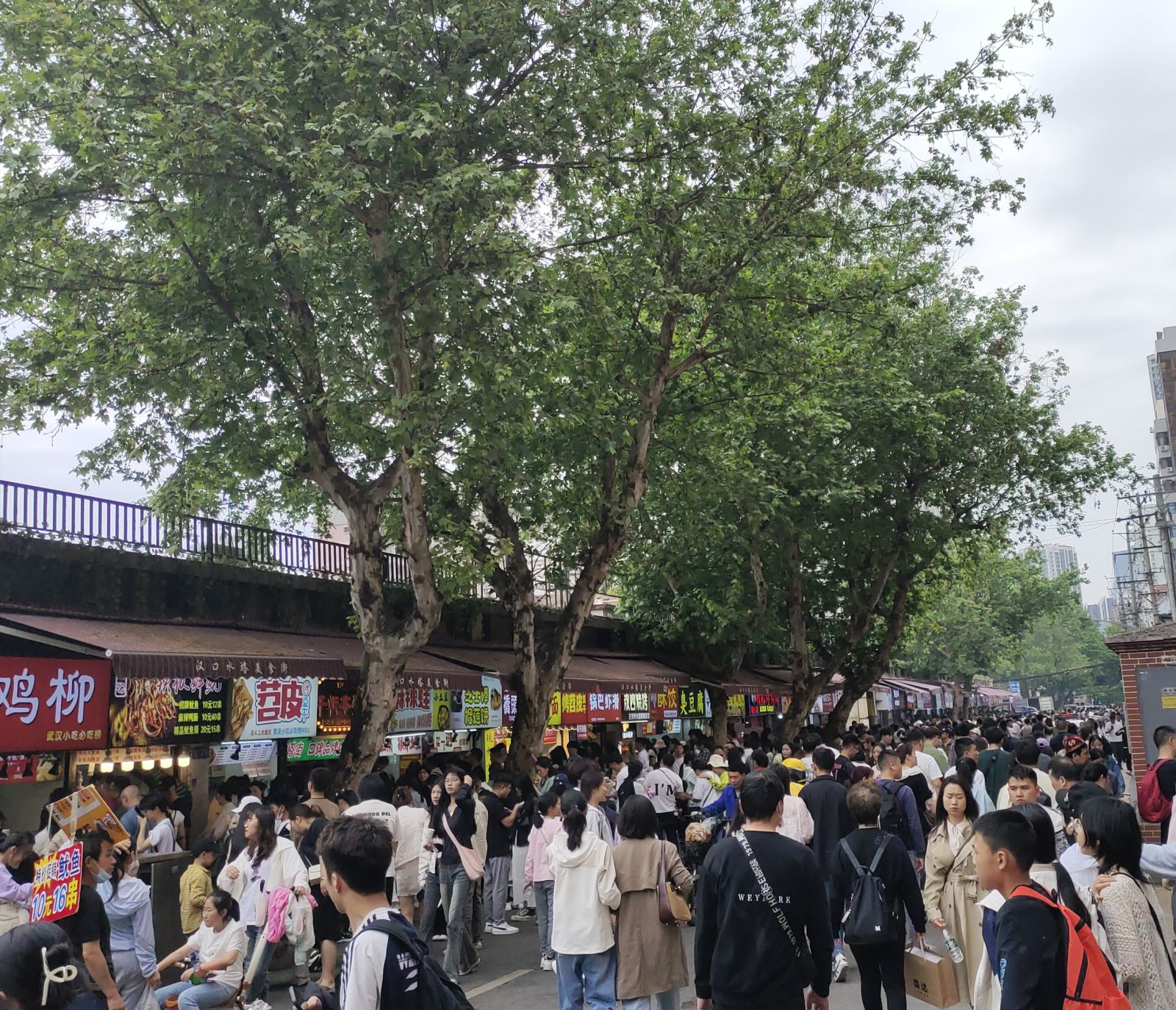 武汉江汉步行街旁小吃街排队情况