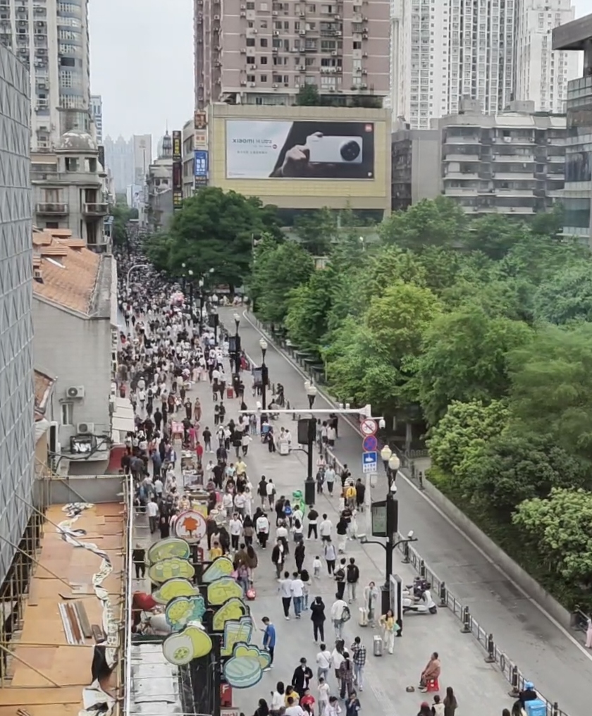 今年“五一”,武汉的江汉路步行街迎来了巨大的客流。5月1日当天,有不少网友分享了在江汉步行街“一步难移”的经历。