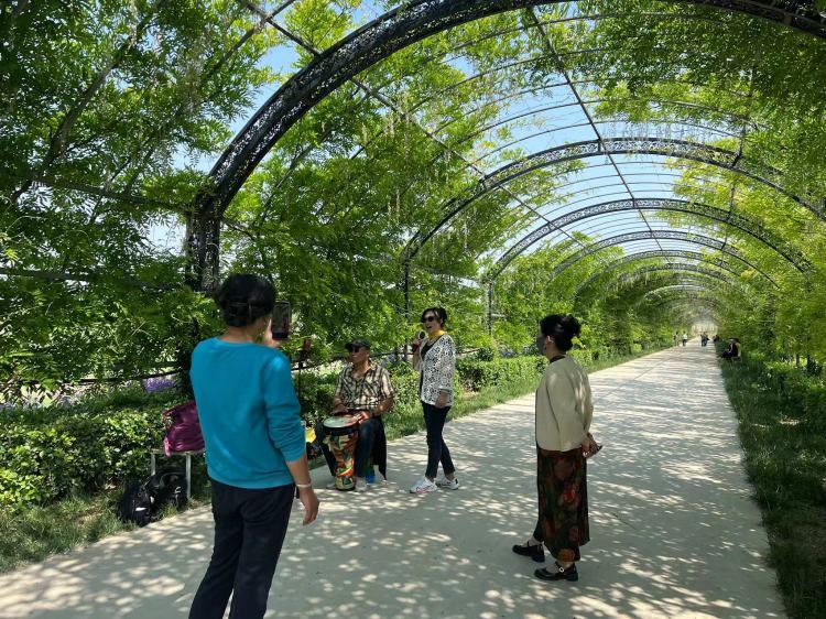 桓台县有众多特色鲜明、风景怡人的地方,而千亩园农场是最受游客欢迎的乡村旅游点之一。农场里花朵开得绚烂多彩,彩蝶飞舞其间,犹如一幅美丽的画卷。有紫色的蓝香介花,鲁冰花、紫藤花长廊等,学员们三三两两的拍摄场景形成了一道独特的风景线。
